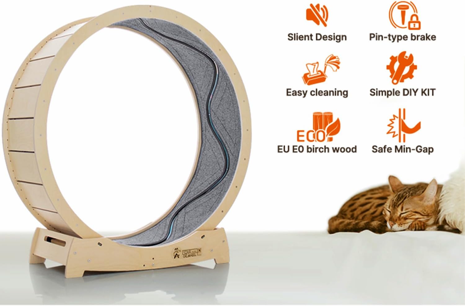- SUPER SILENT and EASY CLEANING: Star Catwheel designed with ventilation bottom and dual silent heels will provide you and your family a quiet night and resting time even when your cats run and spin the wheel. Also, UV-coated wood can be easily cleaned with a wet tissue. Our carpet was processed for water-resistant and high recovery for easy maintenance.