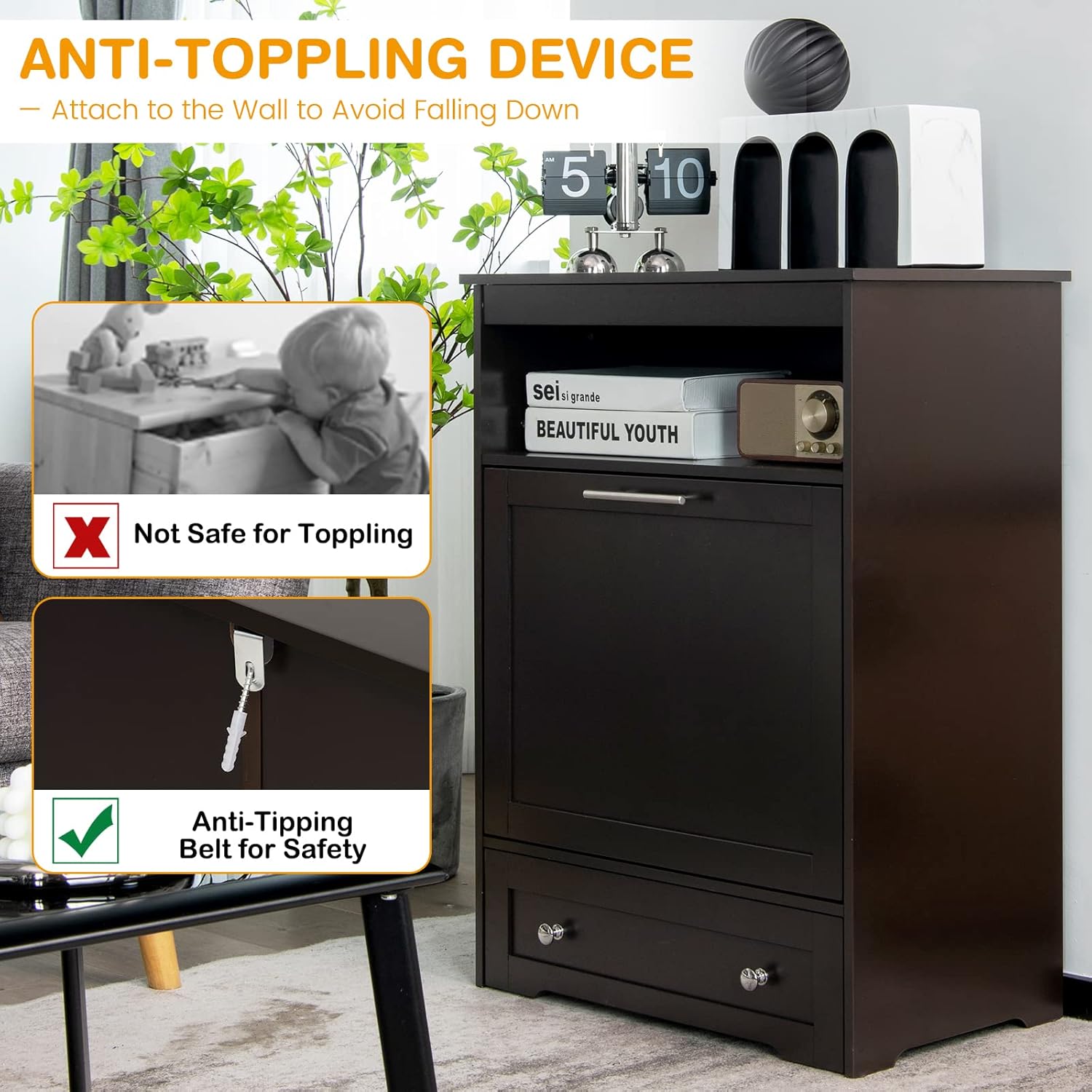 - 【Safe Material & Anti-toppling Devices:】The dog food storage container is made of premium MDF board. 2 dog food bowls are made of food-grade stainless steel for your pet’s safe and healthy eating. Moreover, the anti-toppling devices are included to fix the table to the wall to improve stability and safety.