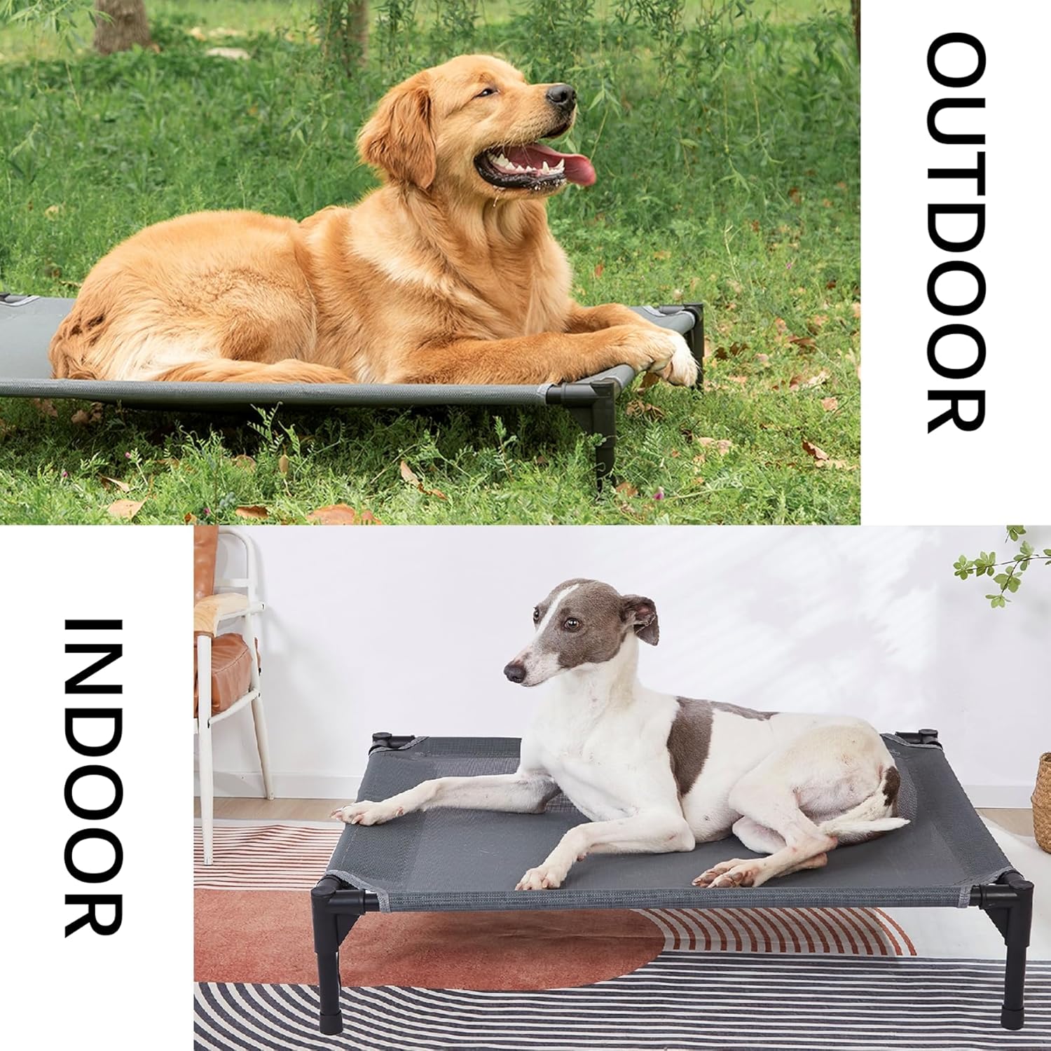 pettycare Elevated Outdoor Dog Bed - Raised Cot for Large Dogs, Heavy Duty Pet Cots Waterproof, Cooling, Washable Breathable Teslin Mesh, Durable, Non Slip, 42 Inches, Grey
