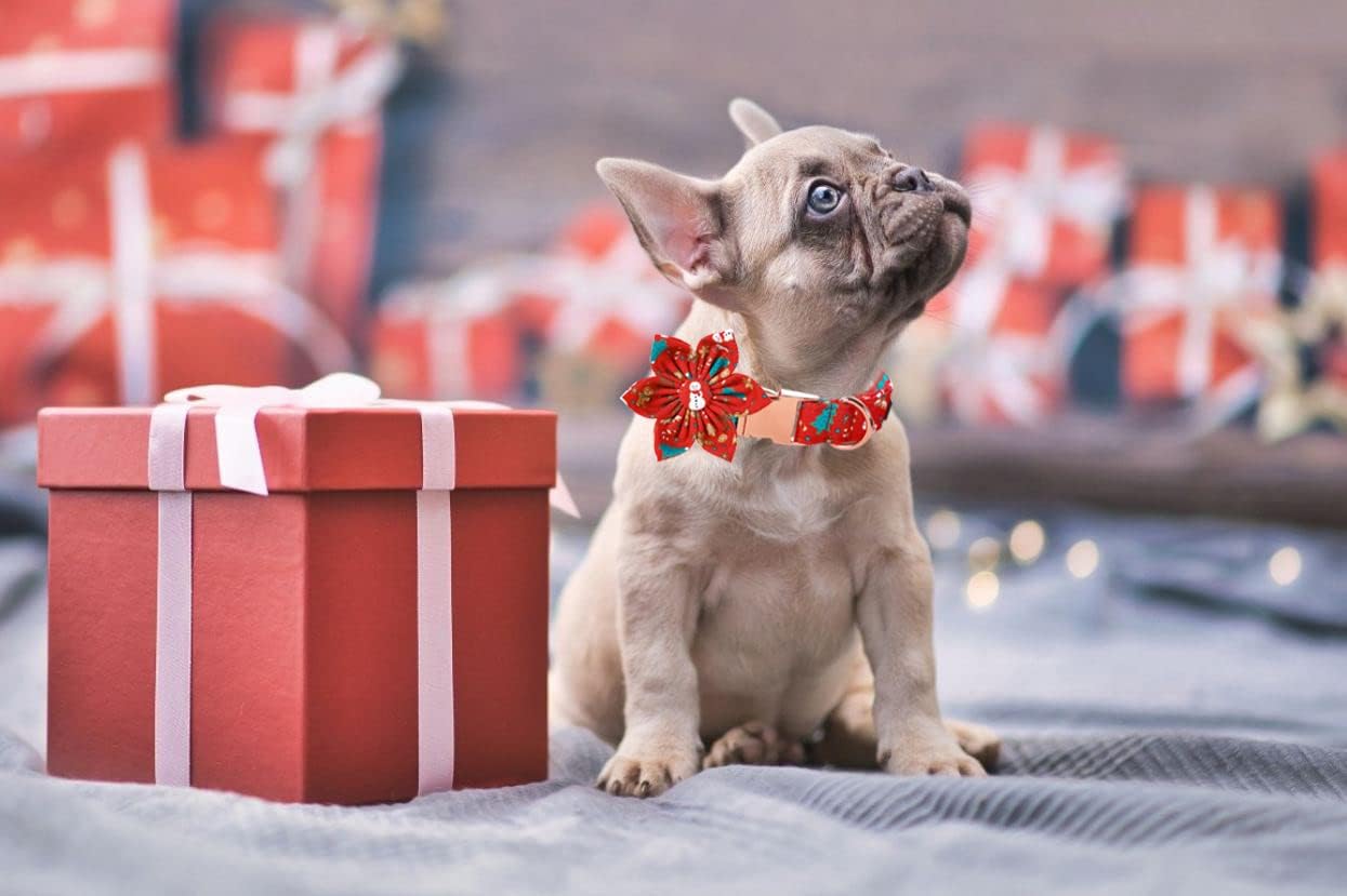 Lionet Paws Christmas Dog Collar with Flower, Dog Flower Collar with Metal Buckle for Dogs and Cats, Adjustable Comfortable Dog Collar Girl Gift, S, Neck 10-16 in