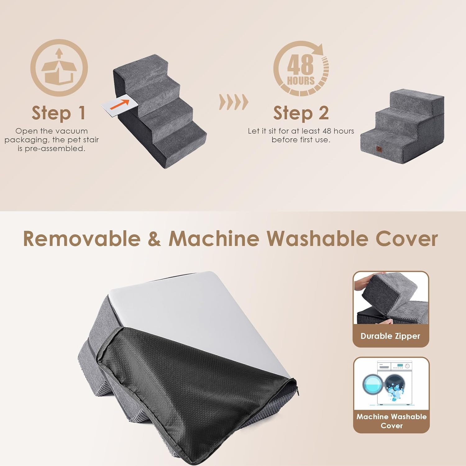 - EASY TO CLEAN - The dog step features a removable and washable cover, which can be cleaned by hand or in the washing machine. This saves you time and makes cleaning incredibly convenient.