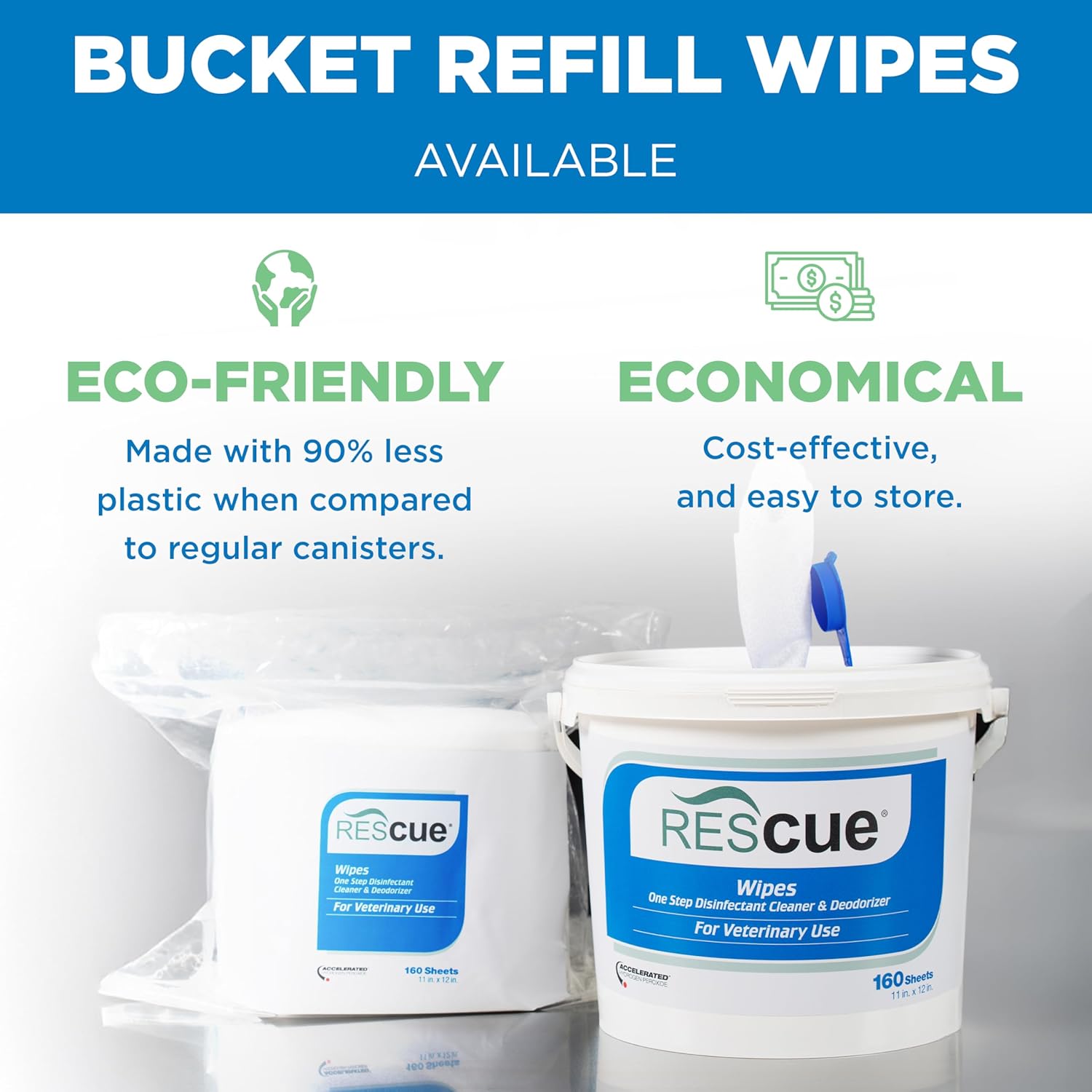 REScue One-Step Disinfectant Cleaner & Deodorizer Wipes for Vet Use – Cleaner for Kennels, Litter Boxes, Vet Offices, Pet Grooming Surfaces – Extra Large, 160-Count Wipes Bucket (4 Pack)