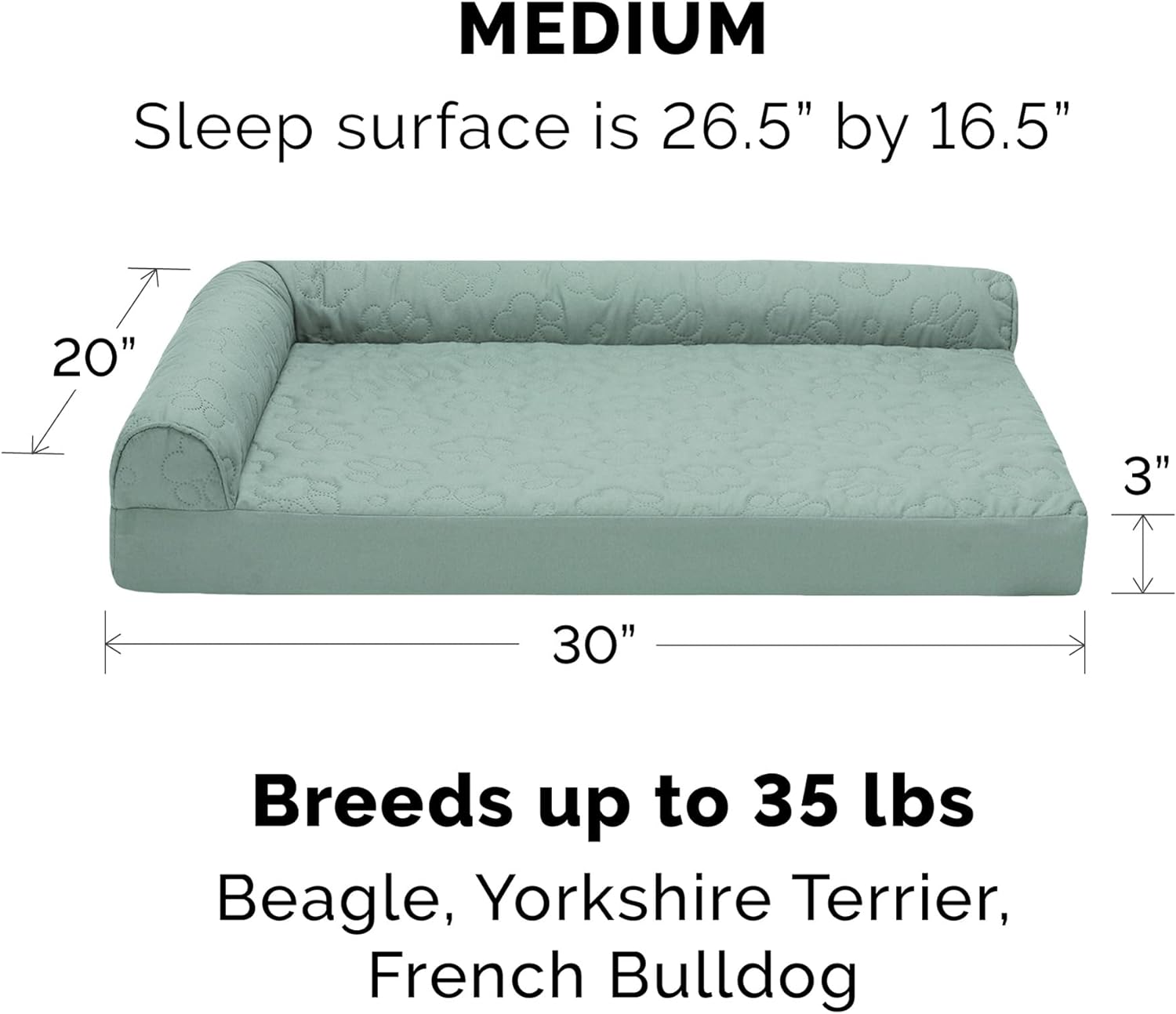 - PRODUCT DETAILS: Cooling Gel Dog Bed, Iceberg Green; Medium - 30" x 20" x 6" (3" Base Foam Height; Sleep Surface: Approx. 26.5" x 16.5")