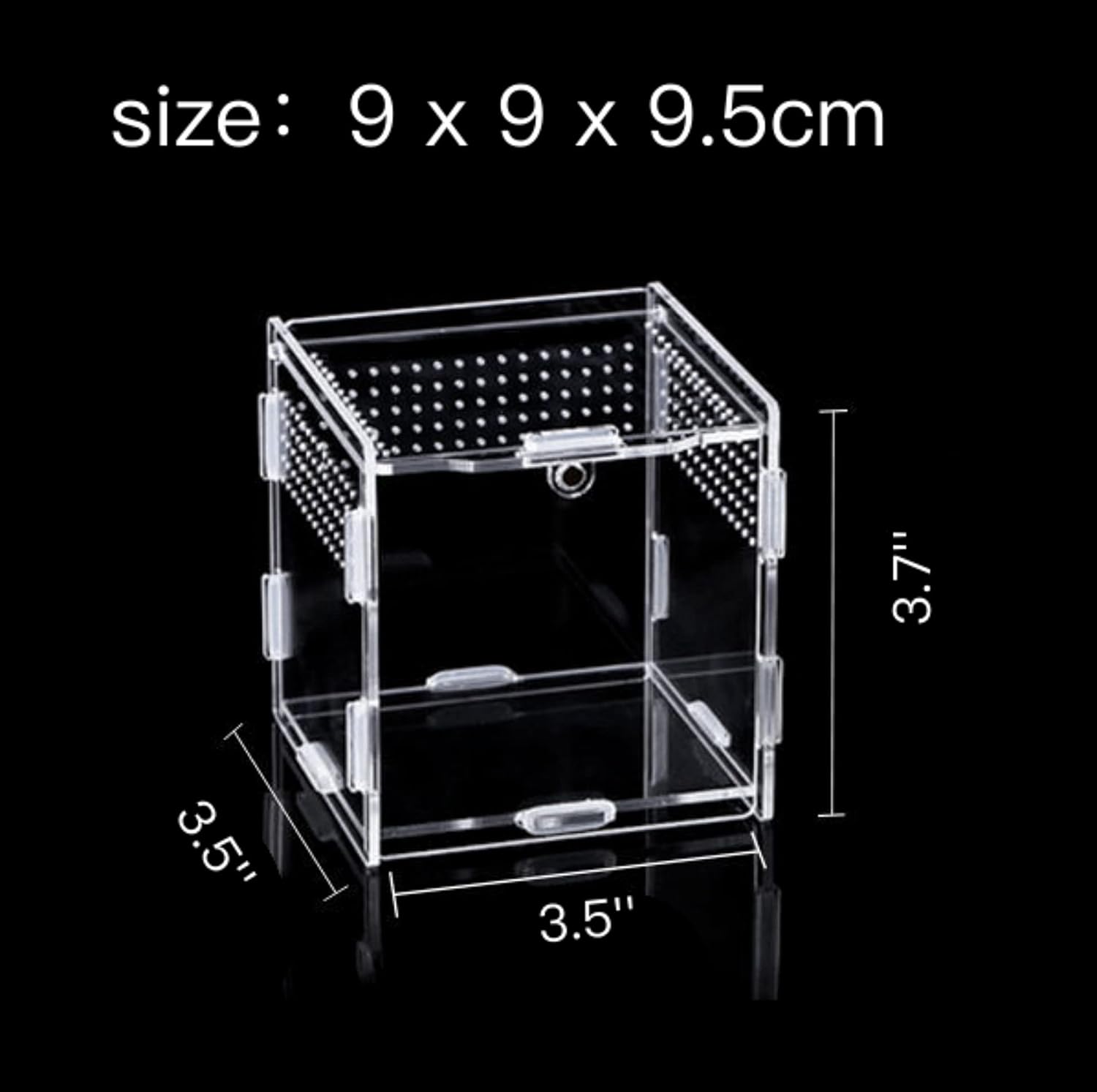 - γMaterialγThe reptile feeding box is made of acrylic, the assembled size is 9x9x9.5cm/3.5x3.5x3.7inch,360 degree full view, completely transparent, clear and bright, so that you can see the behavior of small pets anytime, anywhere. It is easy to observe and clean.