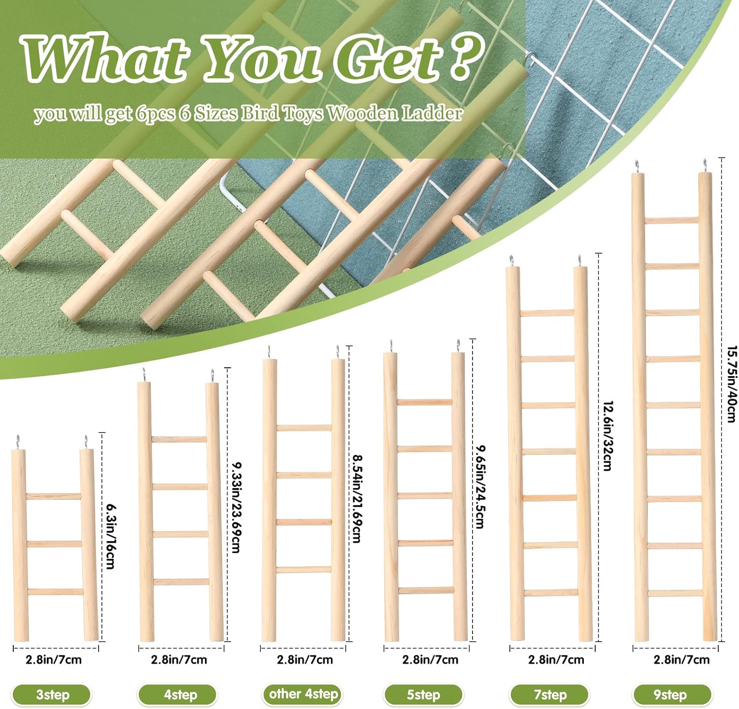 - Safe Material: ladder bird toy is made of wood, reliable, strong and not easy to break, can be applied for a long time; Stainless steel hook is anti rust and sturdy to use