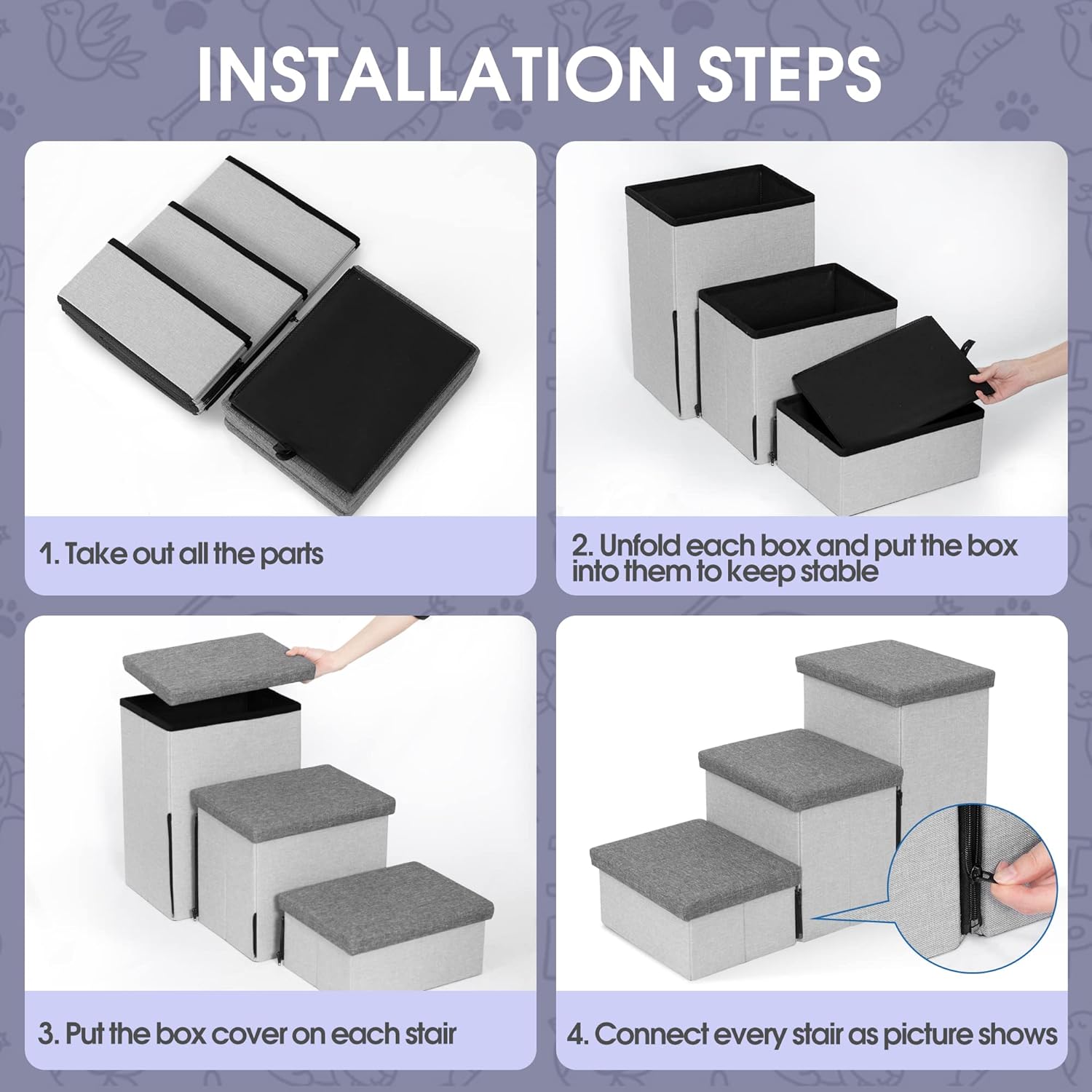 - Added Storage: Each step has a padded, removable top that opens up to reveal added storage space that's perfect for keeping pet toys, treats, blankets, extra linens, or just about anything else