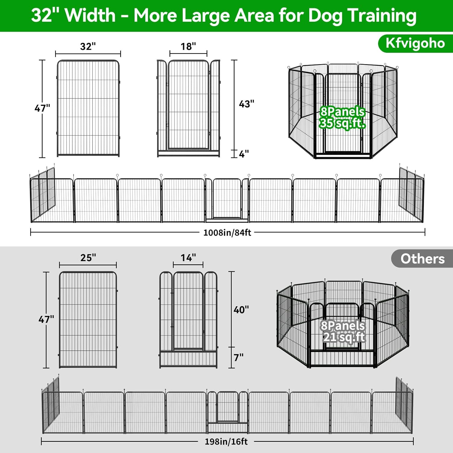 - 【Anti-Rust Coatings Material】 Kfvigoho puppy playpen made of heavy-duty metal, sturdy and durable, steel wire smooth and solid, pet dogs couldn't damage or chew it, anti-corrosion coatings and rust-proof process helps panels works well outdoor and extend its life, the indoor and outdoor dog pen great for people with dogs