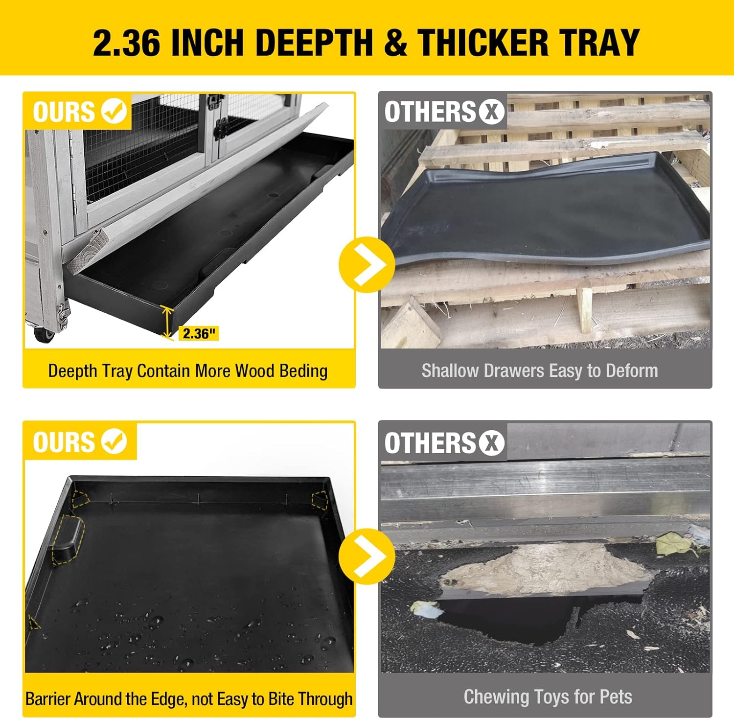 - 2.36 " Plastic Tray: Deepened and thickened plastic drawer to give you enough depth to put hay, special baffles in the four corners to prevent pets from biting in