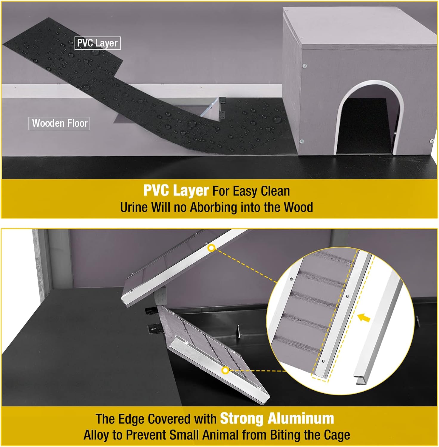 - PVC Layer: Each layer of rat cage is covered with PVC to prevent urine from leaking into the wood, reduce strong odor,while makes cage nowhere to chew