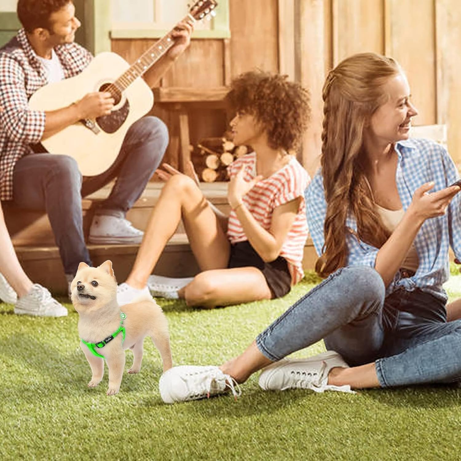 PUPTECK No Pull Dog Harness Soft Adjustable Basic Nylon Step in Puppy Vest Outdoor Walking with ID Tag, Green,S