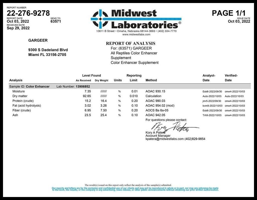 - RESTORE. Gargeer COLOR ENHANCER restores pigments that typically fade with captive pet diets, using CAROTENOIDS.
