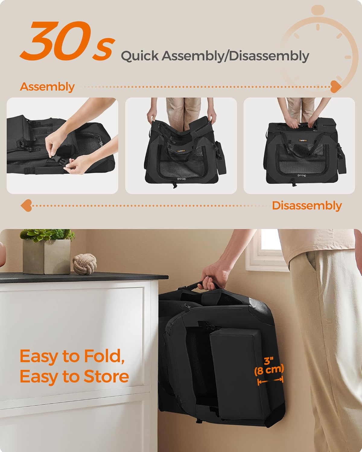 Feandrea 24 Inches Collapsible Soft Dog Crate, Portable Travel Dog Crate for Indoor and Outdoor Use, Dog Carrier Kennel with Safety Zippers, for Living Room, Car, Travelling, Camping, Black UPDC60H