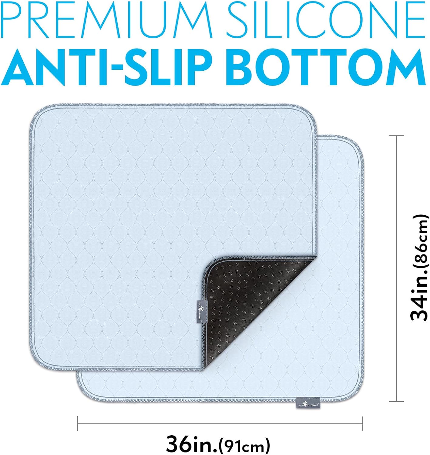 Paw Inspired Washable Pee Pads for Dogs (2 Pack), Leakproof, Non-Slip Reusable Puppy Pads for Potty Training, Whelping, Waterproof Mat (34x36 Inch, Pack of 2)