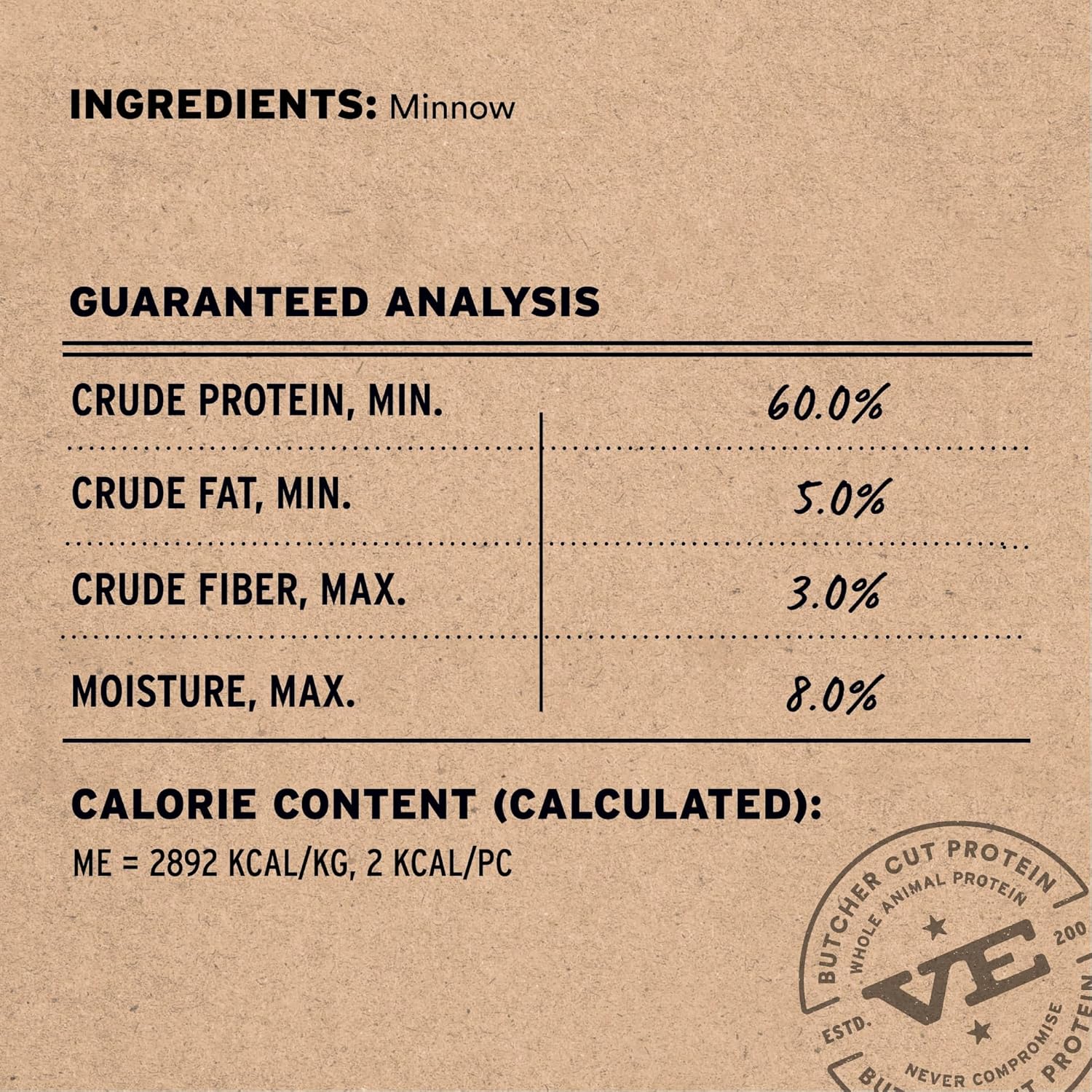 - FREEZE-DRIED RAW MINNOWS CAT TREAT: Vital Essentials Freeze Dried Cat Treats pack more protein than industry standard into every bite to deliver the peak vitality your dog deserves. Our natural freeze-dried raw cat treats are made from responsibly sourced premium minnows.