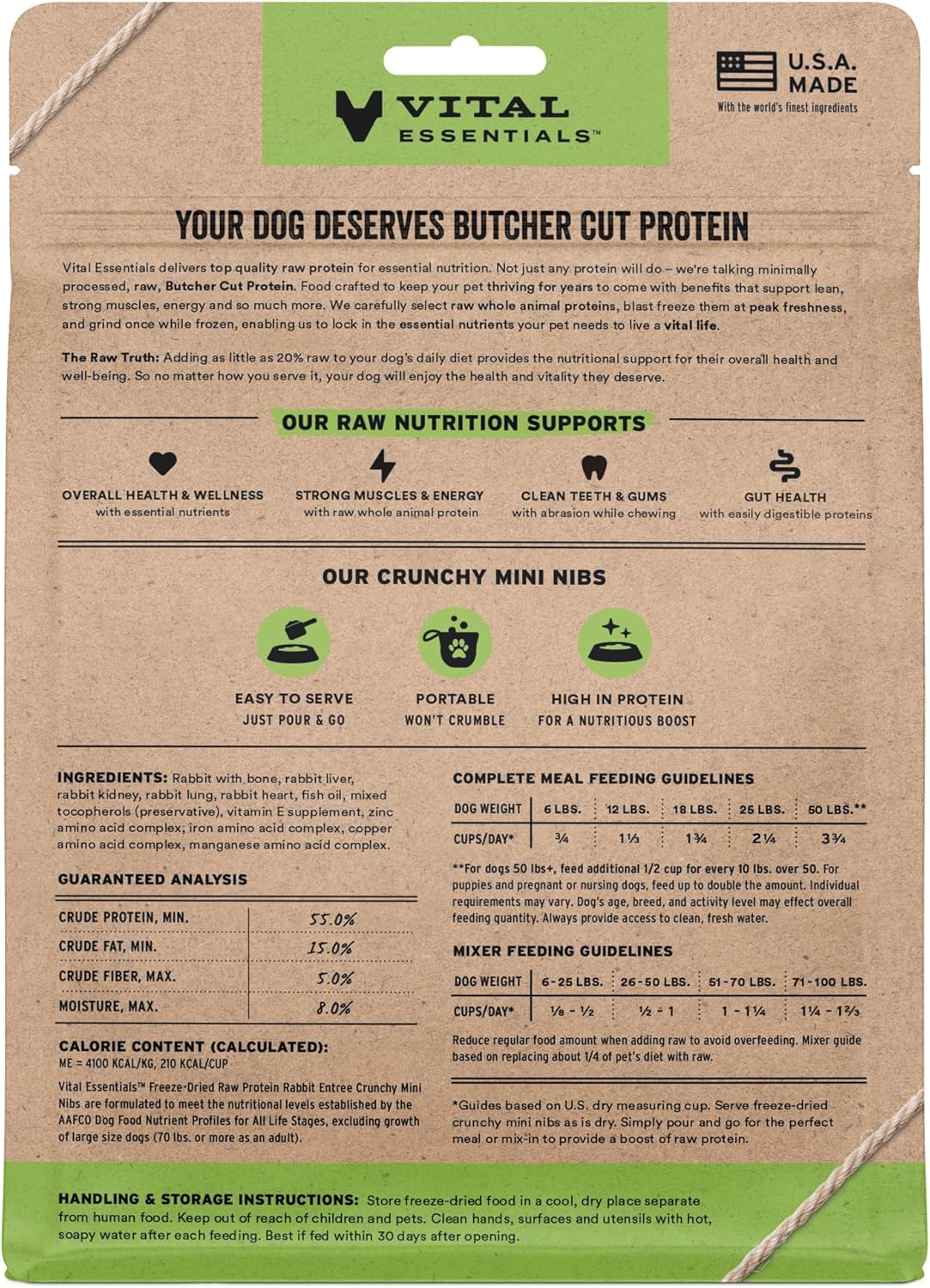 Vital Essentials Freeze-Dried Raw Rabbit Meal or Mixer Dog Food Crunchy Mini Nibs, 5.5 oz