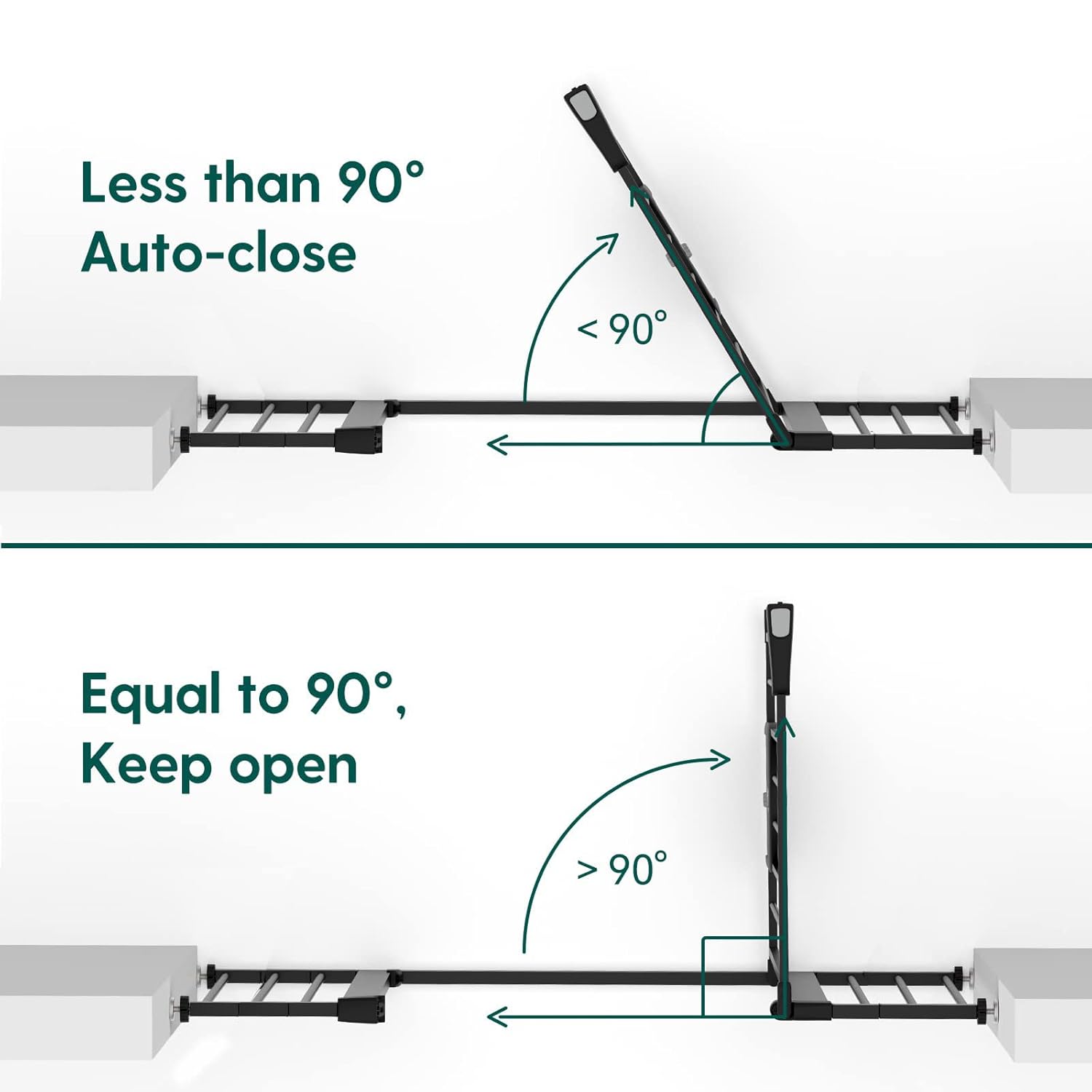 - AUTO CLOSE: This safety gate has an auto-close function that gently closes the gate and a stay-open feature that keeps it open. It can be opened easily with one-hand operation even while holding a baby, free to go through from both sides