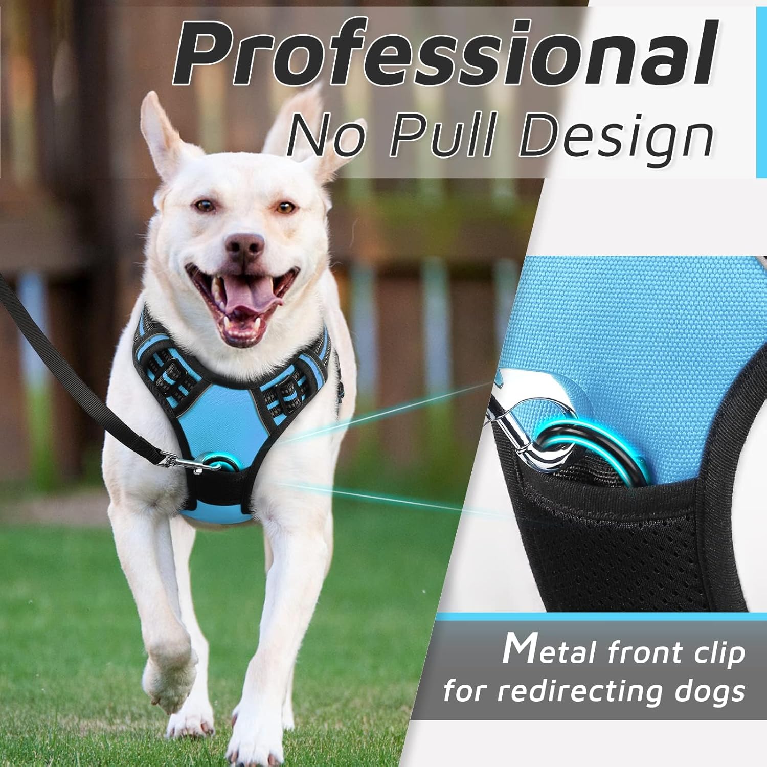 - No Pull & Better Control: Our no pull dog harness is typically designed with 2 sturdy metal leash rings for leash attachment. If you use the front hook on the chest, it will reduce the pulling, a perfect choice for dog training. The back leash ring is great for casual walks, jogging, hiking, etc.