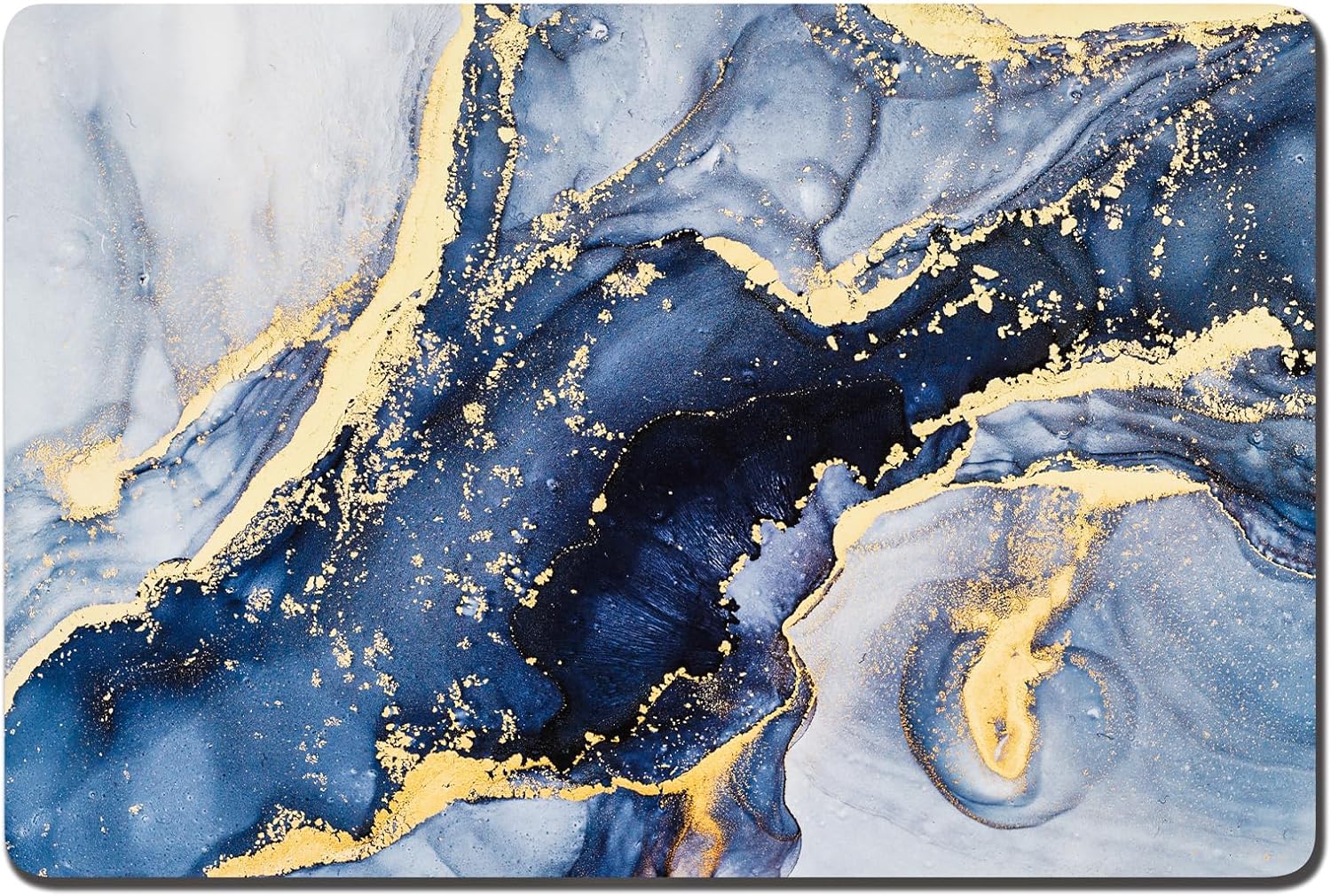 Rnivvi Dog Food Mat, 12" x 19" Marble Absorbent Dog Cat Bowl Mat for Food and Water, Cute Anti-Slip Rubber Pet Feeding Rug Protect Floors, Puppy Placemat for Feeding & Watering Supplies, Grey