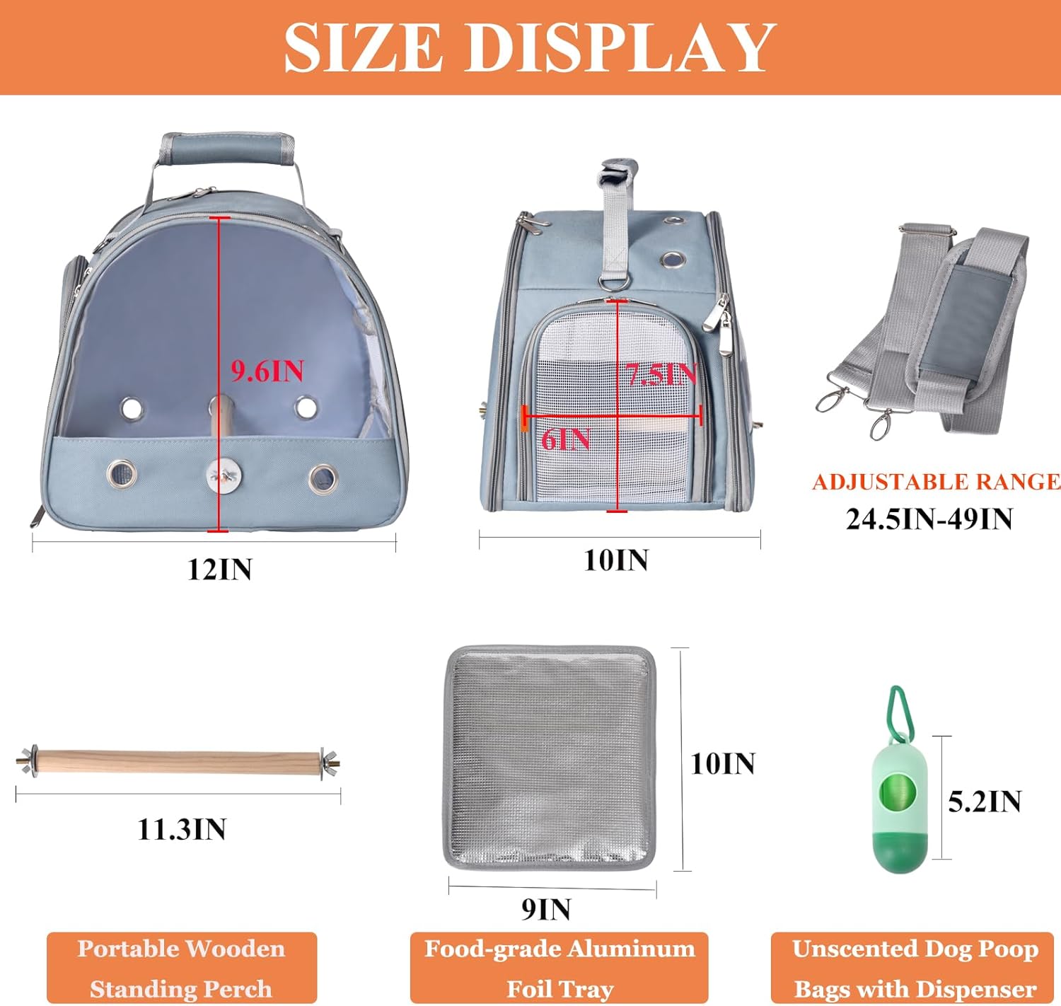 - 4. Food-grade Aluminum Foil Tray: This bird travel case is equipped with a quality tray whose surface material is aluminum foil. Two main characteristics of aluminum foil material are waterproof and easy to clean