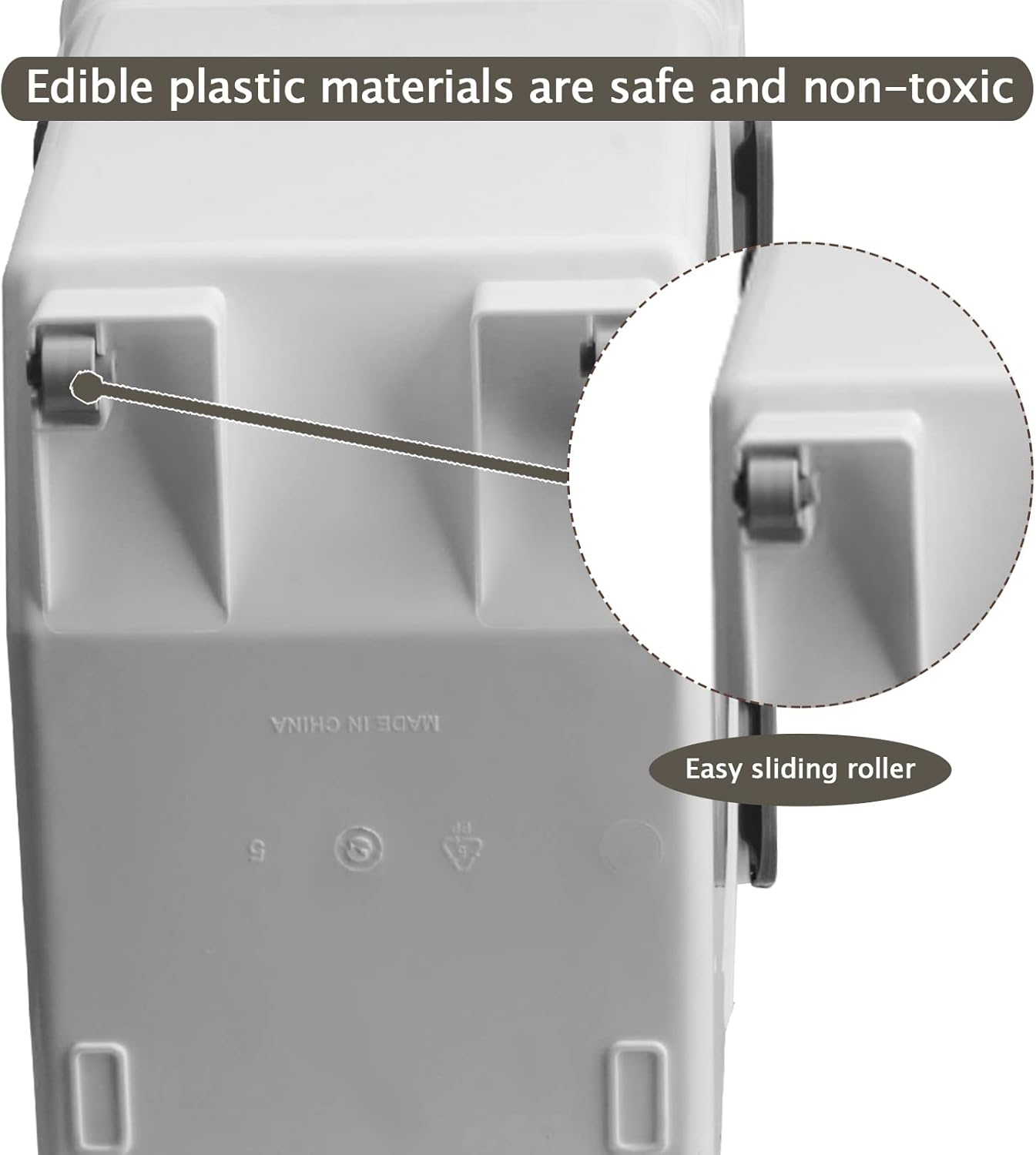- 【Food Grade & Durable Material】 The rice storage container is made of BPA-free PP plastic and eco-friendly silicone, non-toxic and safe. Size(approx.): 32x23x36cm/ 12.6x9.05x14.17in (LxWxH). Capacity: Can hold up about 25lb flour/rice and about 20lb of pet food per container. Tip: Capacity will vary depending on the size of what you’re putting in, the capacity of the product is for reference only.