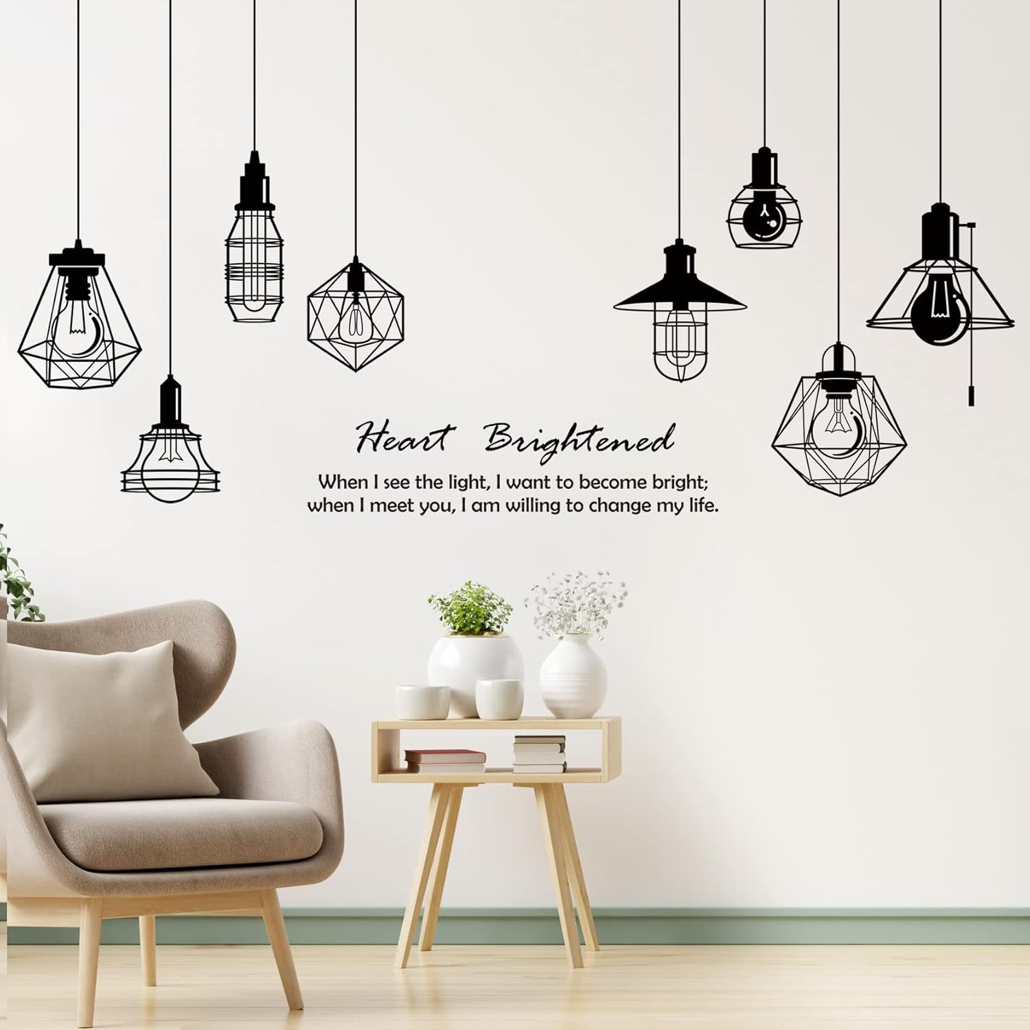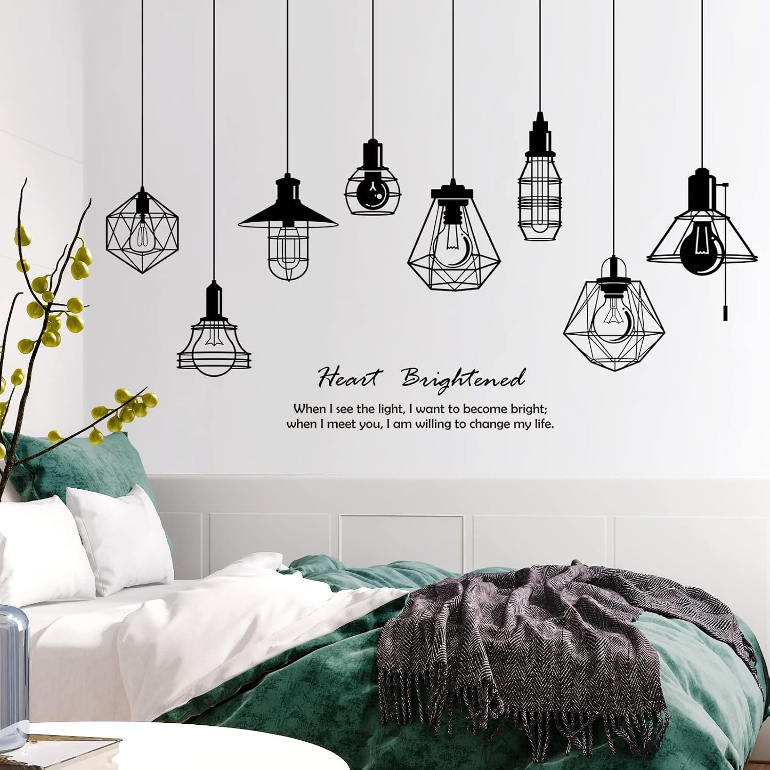 Removable 8pcs Hanging Black Vinyl Chandeliers Wall Sticker Quotes Heart Brightened Wall Decal DIY Peel and Stick Decor for Kids Boys and Girls Bedroom Living Room Studyroom Playroom Classroom
