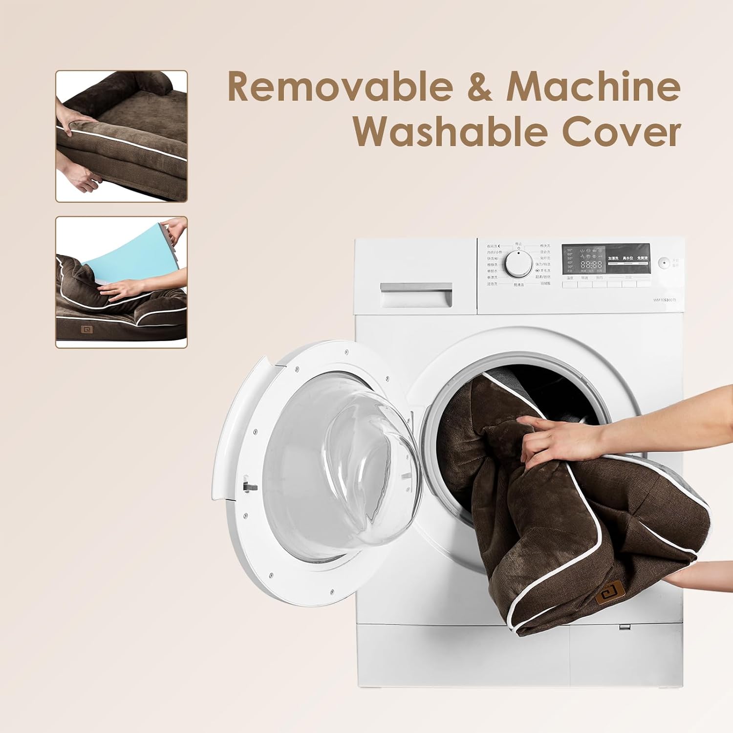 - CARE INSTRUCTIONS: Our dog bed features a removable and washable cover with a zipper closure, making it easy to clean. Remove the foam insert, and the cover can be washed in a machine. Please note that the foam insert is not washable. Allow the bed to expand for 24-48 hours after unpacking.