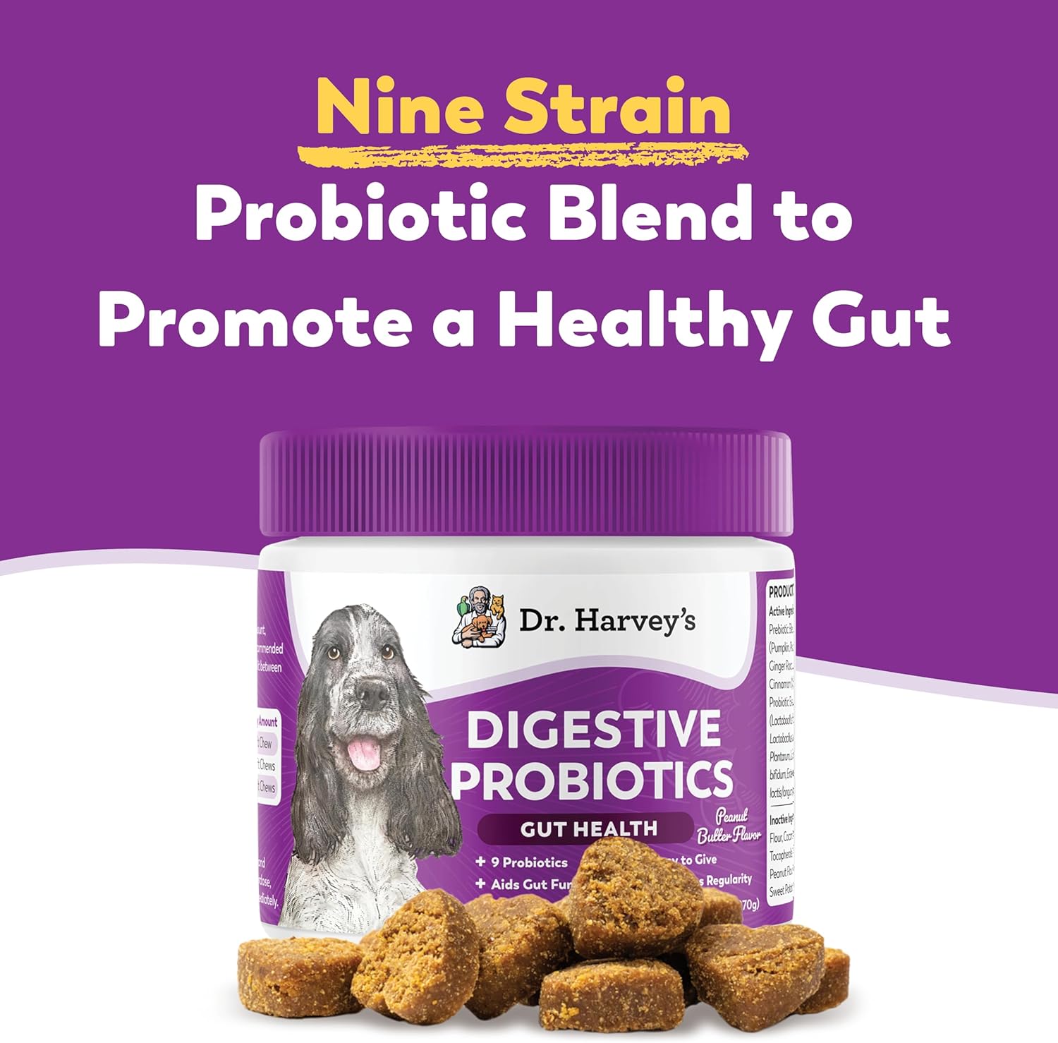 Dr. Harvey's Digestive Probiotic Soft Chews for Dogs, 7 Probiotics for Gut Health, Diarrhea and Bowel Support, Peanut Butter Flavor (90 Chews)