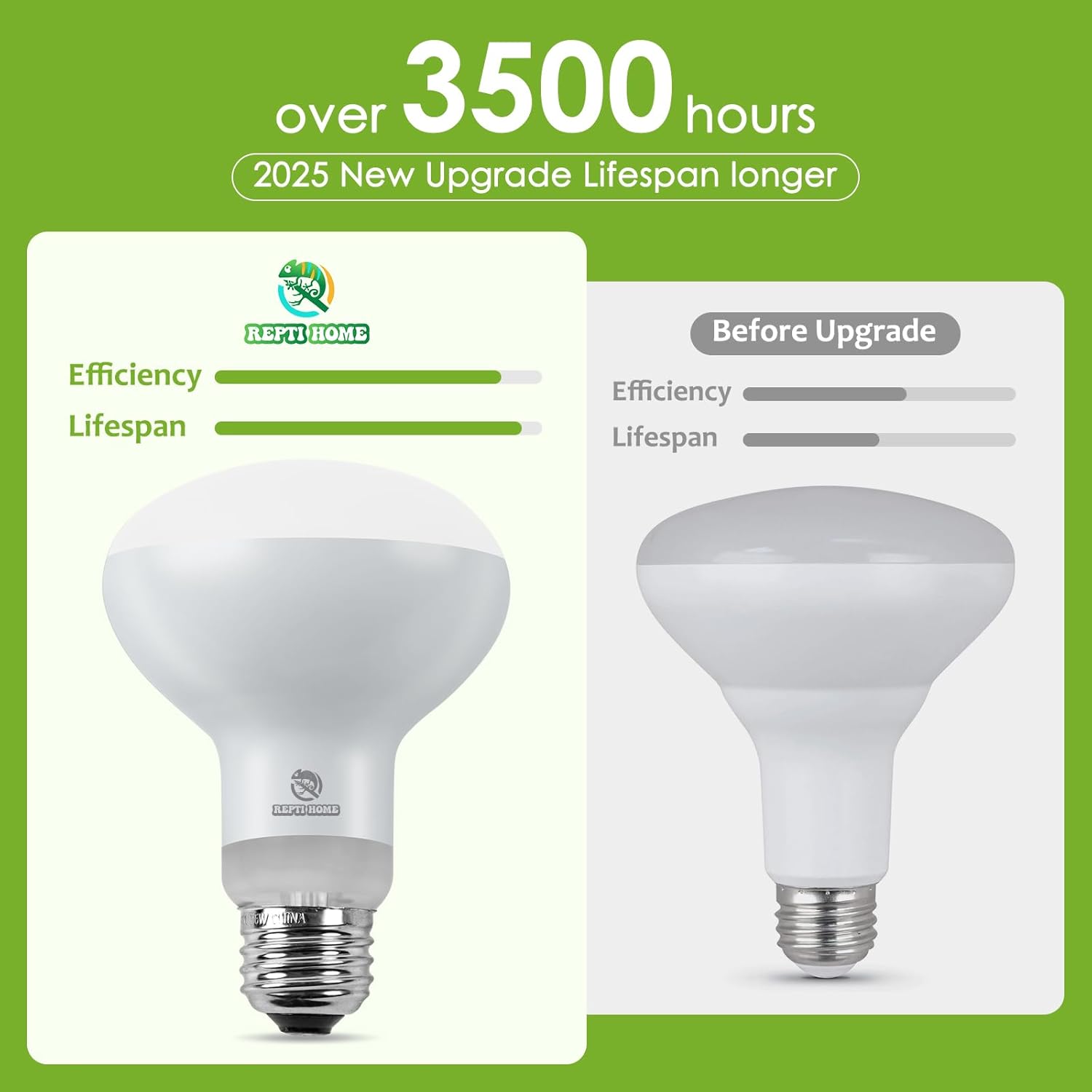 - Rapid Heating Up: REPTI HOME Reptile heating bulb uses an advanced shape design and mature technology, allows light and heat to concentrate below the bulb, greatly reducing heat loss. More efficient and faster to heat than regular bulbs. After a few seconds of opening, you can feel the temperature rise, and after a few minutes the temperature can reach the temperature that amphibians need.