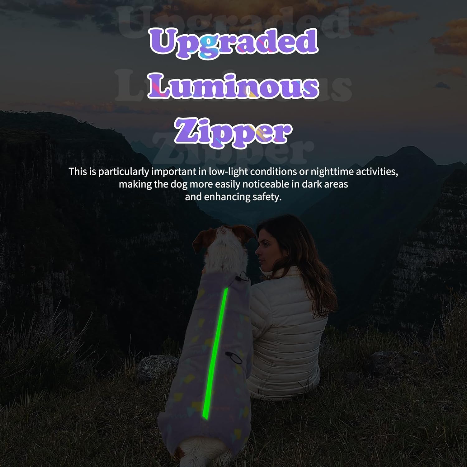 ROZKITCH Dog Fleece Jumpsuit Large, Pet Windproof Warm Cold Weather Jacket Vest with Luminous Zipper, Dog Halloween Costume Jumpsuit Apparel Outfit Clothes for Large Dogs Geometry 2XL