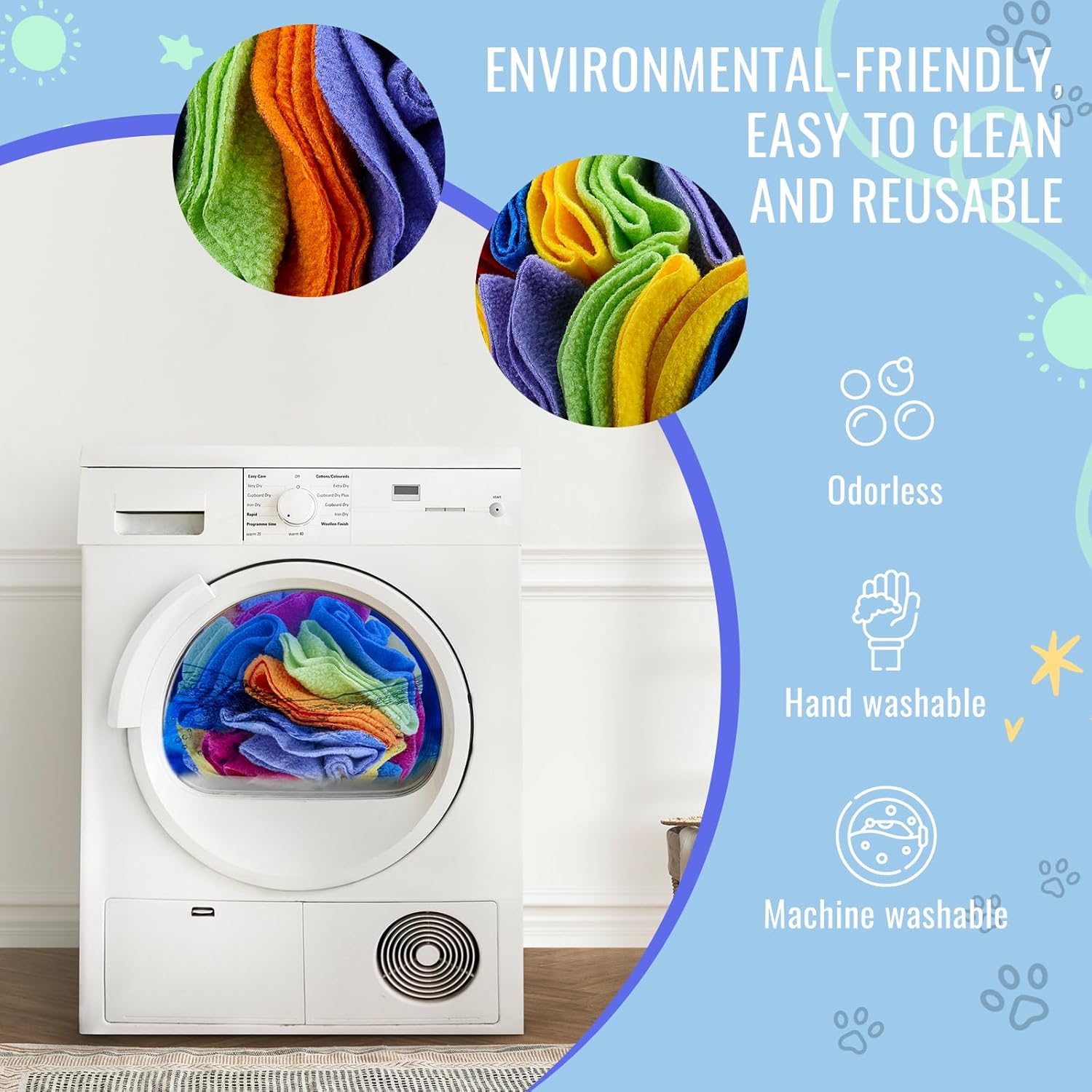 - 🐶Maintenance tips 🐶 It is recommended that you wash the sniffing ball immediately after your pet has finished playing, you can hand wash or machine wash, tumble dry low, do not bleach. Also, always supervise your dog while it is playing.