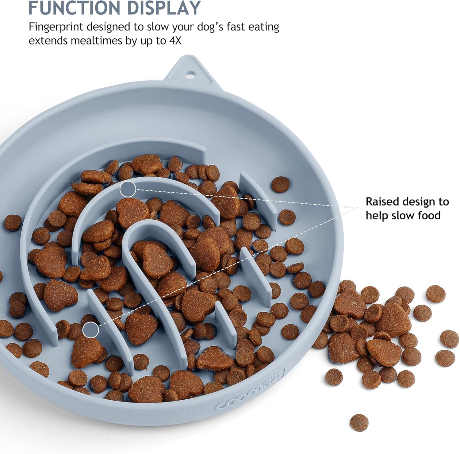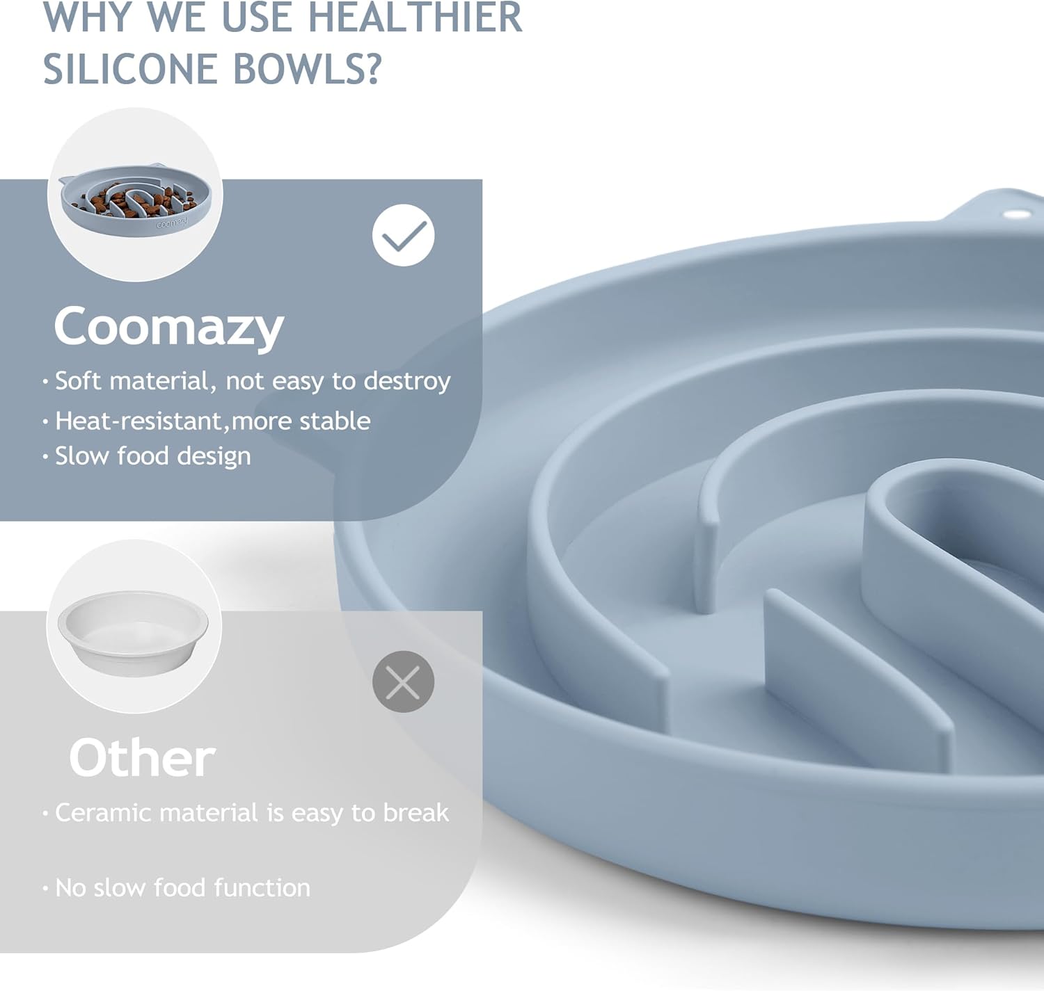 Coomazy Silicone Slow Feeder Dog Cat Bowls, Interactive Puzzle Toy for Pets Food Training, Keeps Dogs Cats Busy, Prevents Puppy Kitty Overeating (Light Blue, 1.4Cup)