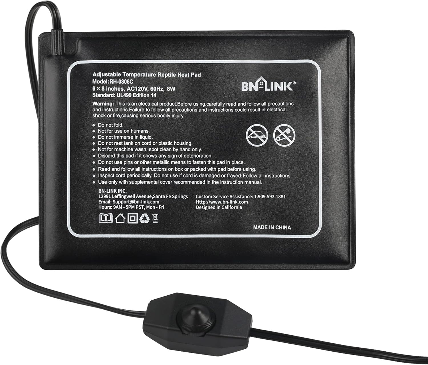BN-LINK Reptile Heating Pad 6"X8" with Adjust Knob, Adjustable Temperature Under Tank Heater for Reptiles, Indoor Terraium Heating Mat for Turtles, Lizard, Snakes, Frogs, and Other Reptiles