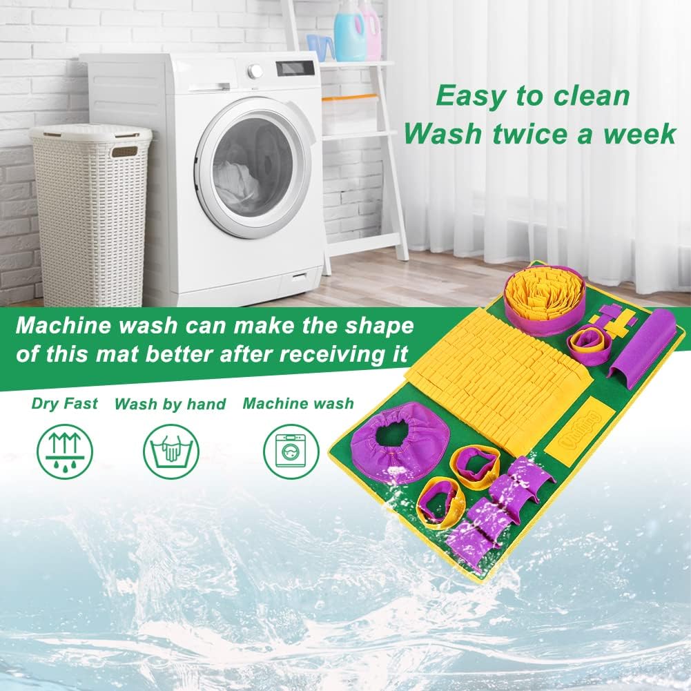 - SAFETY MATERIALS - The main material of the foraging mat is felt cloth, which is safe but not chewproof. When you receive this felt snuffle mat, machine wash it once to make the shape as good as the picture
