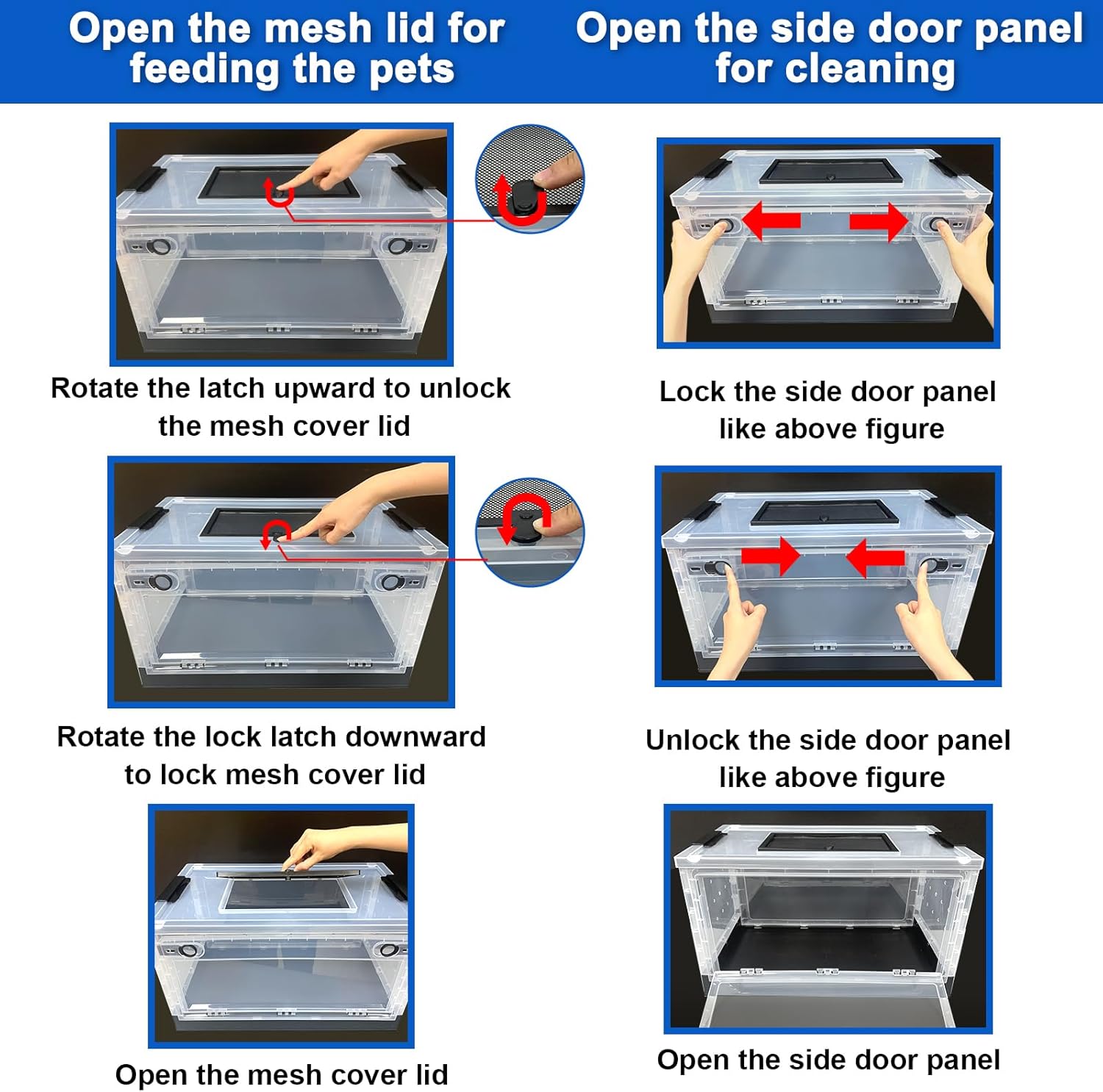 - 【Reptile Terrariums pet breeding house case size】Please know that our breeding cage has two size and this is the big size 21.3"L x 12.4"W x 12.2"H.Please check out the size carefully to make sure this one is big enought for your pet.