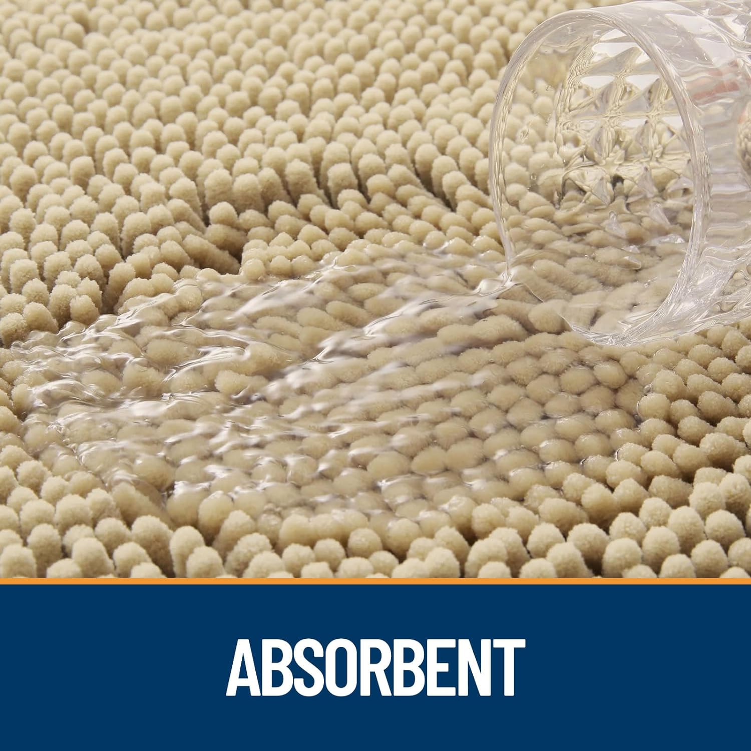 OLANLY Dog Door Mat for Muddy Paws 47x24, Absorbs Moisture and Dirt, Absorbent Non-Slip Washable Doormat, Quick Dry Chenille Mud Mat for Dogs, Entry Indoor Entryway Carpet for Inside Floor, Beige