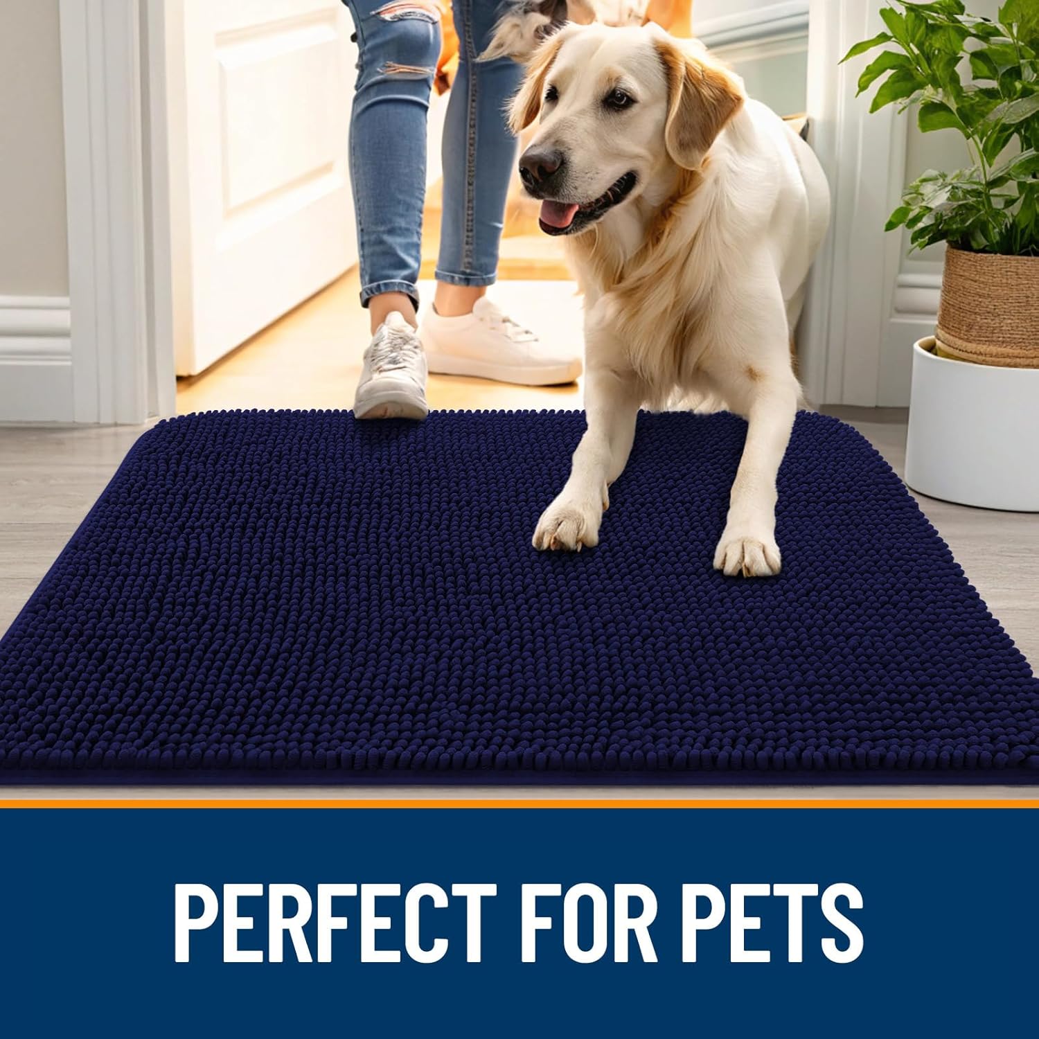 OLANLY Dog Door Mat for Muddy Paws 70x24, Absorbs Moisture and Dirt, Absorbent Non-Slip Washable Doormat, Quick Dry Chenille Mud Mat for Dogs, Entry Indoor Entryway Carpet for Inside Floor, Navy Blue