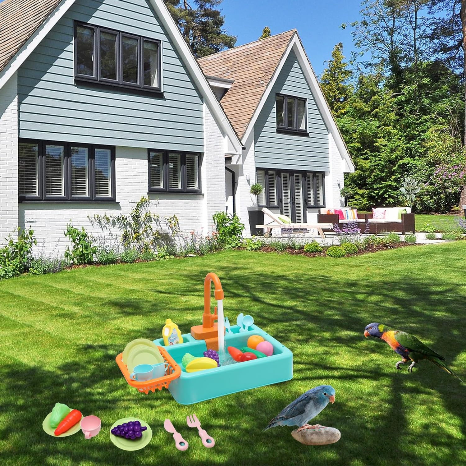 - 【 Multi functional bird bathtub】: The parrot bathtub can be your child's simulated dishwasher or your bird parrot bathing tool. It can be used as a children's toy, and the bird bath tub contains many small toy accessories, which will make birds more interesting when taking a shower. You, your children, and pets will have a wonderful summer.