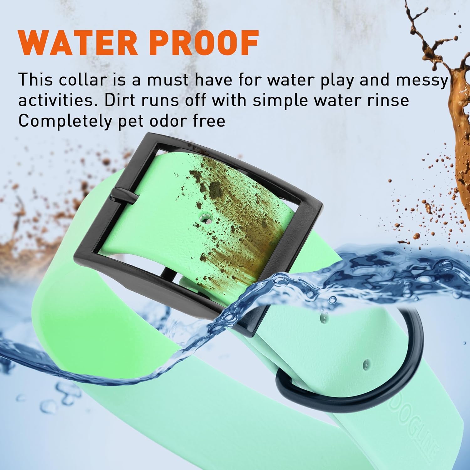 Dogline Biothane Waterproof Dog Collar Strong Coated Nylon Webbing with Black Hardware Odor- Proof for Easy Care Easy to Clean High Performance Fits Small Medium or Large Dogs, Sea Foam Green