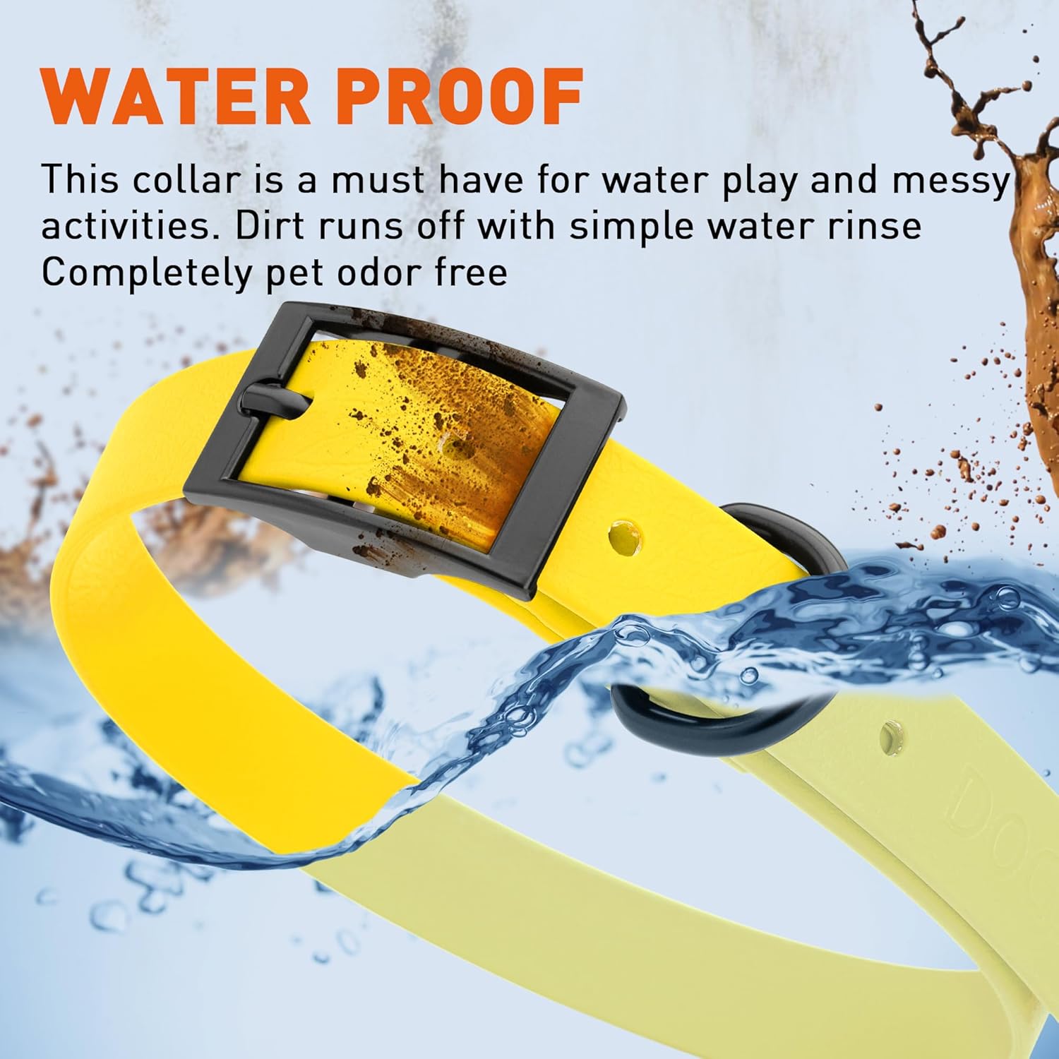 Dogline Biothane Waterproof Dog Collar Strong Coated Nylon Webbing with Black Hardware Odor- Proof for Easy Care Easy to Clean High Performance Fits Small Medium or Large Dogs, Lemon Yellow