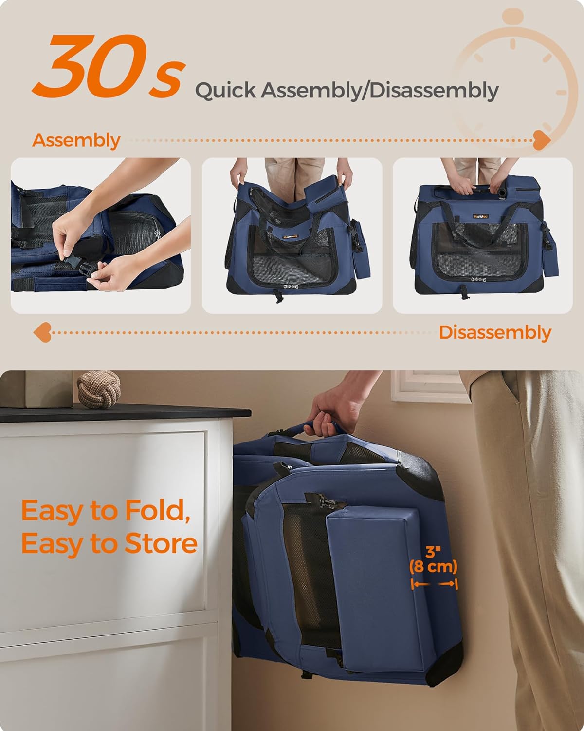 - 【QUICK ASSEMBLY & EASY FOLDING】The dog crate can be assembled in 30 seconds without tools and can be stored in the car or in the corner of your home after folding. It can be easily carried for indoor use or traveling, giving your dog a warm home anytime