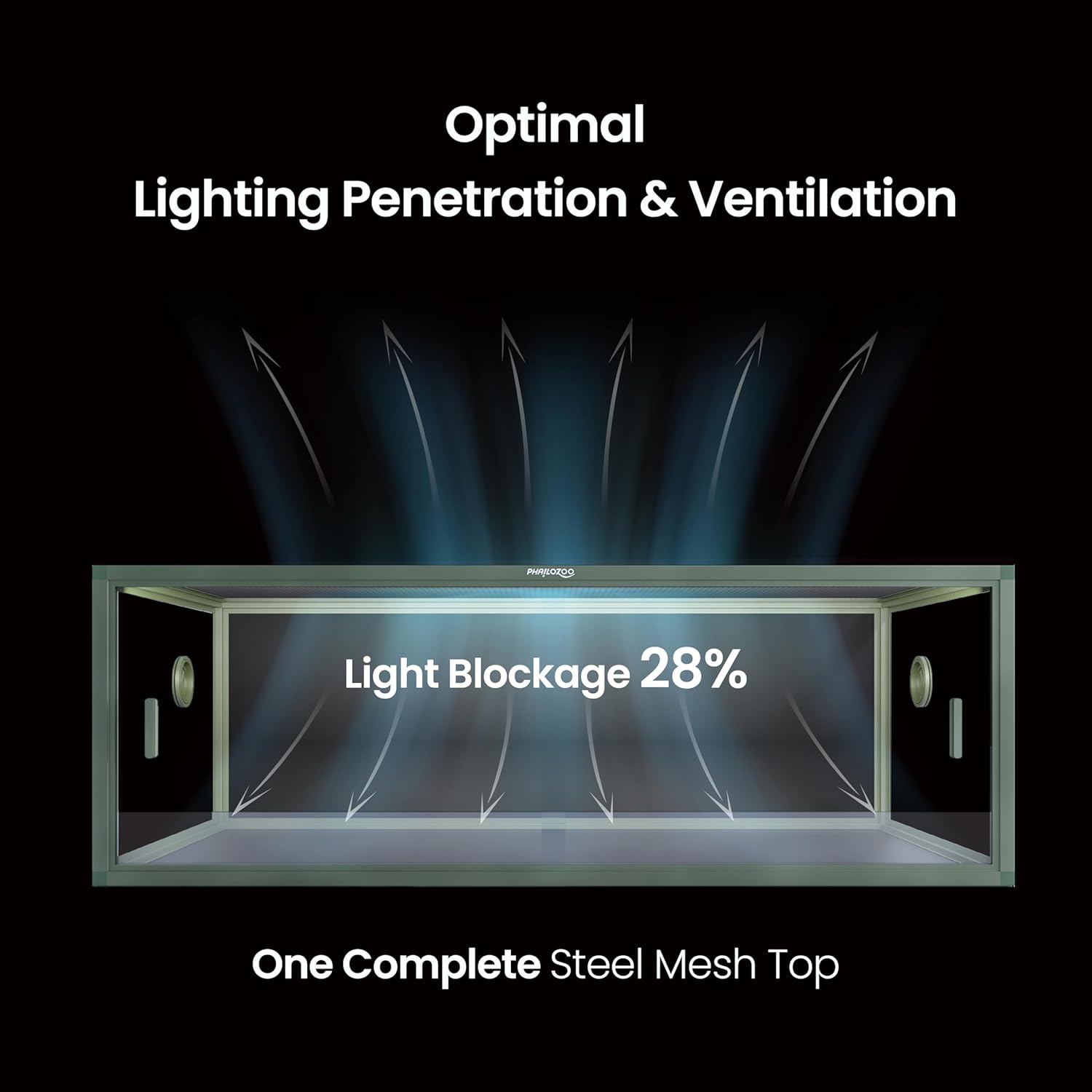 - γHighly AdaptiveγWell-lit screen top with only 28% blockage. Compatible with many reptile accessories and equipment, such as heat lamps for reptiles, reptile humidifiers, reptile misters, reptile foggers, reptile UVA and UVB. Our reptile terrarium is great for holding temps and humidity.