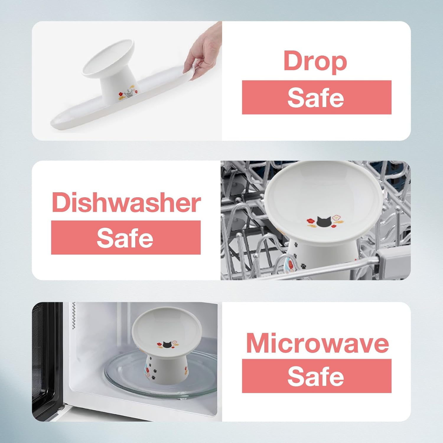 - Necoichi’s largest bowl yet! Bowl measures 6.1 x 5.7 inches in diameter, 1.8 inches deep and 5.3 inches tall, which when combined with the tilted lip, resolves any issues that certain breeds may have encountered with previous bowl types. The tilted lip makes it even easier for flat-faced cats and messy eaters to dine with less difficulty and stress.