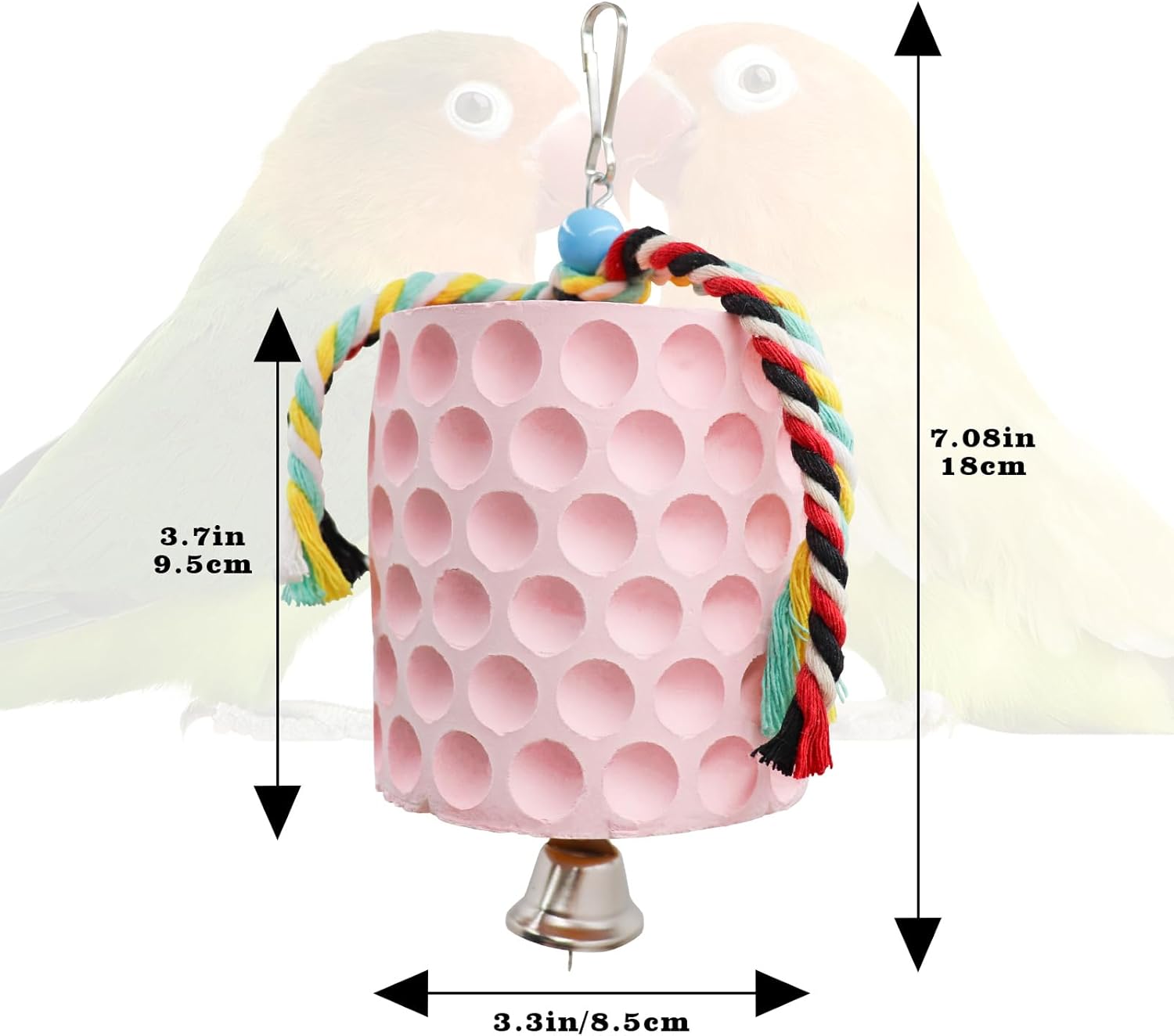 - Attractive Design: Our bird calcium stone toy is made into a over sized circle shape, both attractive and convenient for birds to chew. The bell at the bottom of the toy emits a pleasant ringing sound when pecked.