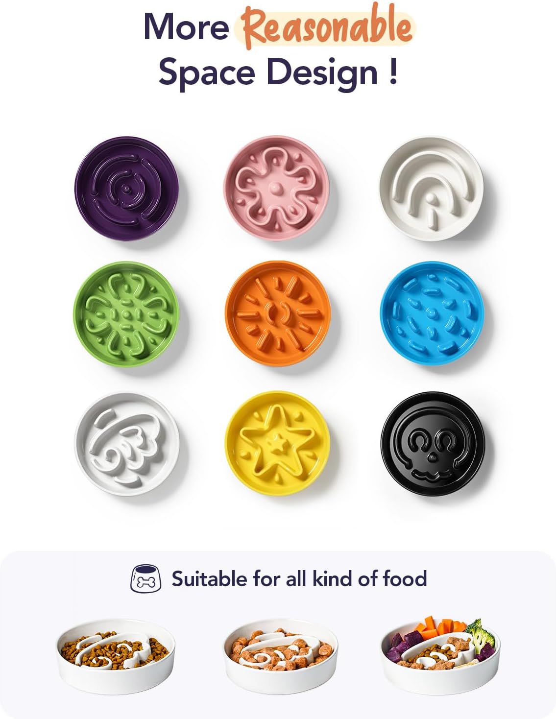 - Slow Down Eating, Bring Dog A Healthy Diet: Fast-eating dogs experience bloat, regurgitation, and obesity easily. Our slow feeder dog bowl design with the ridges and maze pattern helps your dog to eat slower than 10 times. Your dog could change his overeating behavior through a challenge and fun mealtime