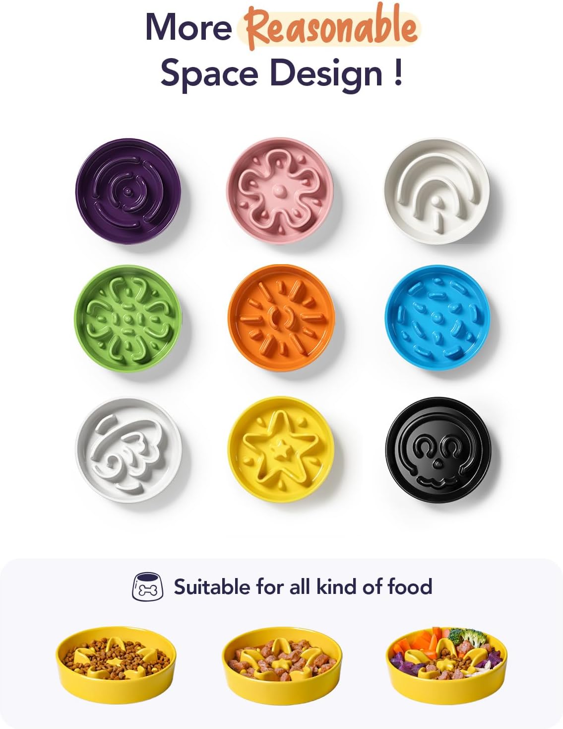 - Premium Ceramic, Durable and Stable: We use premium ceramic, not easy to damage, so your dog could enjoy his food safely and healthily. It is sturdy and heavy enough to be more stable. However, if your dog is using a slow feeder bowl for the first time, we recommend starting with a silicone bowl to help them get used to it.