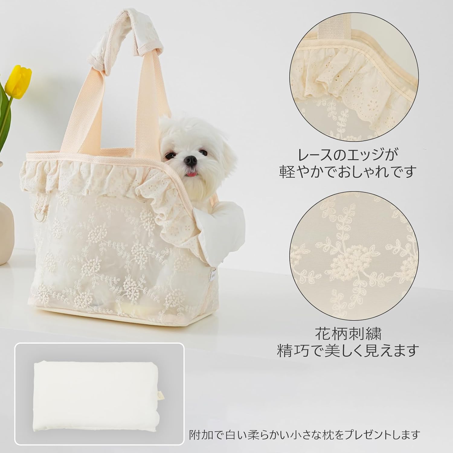 - 【Stylish Lace Design】The dog purse carrier for small dogs comes in a trendy and lace design that looks like a combination of fashion elements, but also practical and functional puppy carrier. Stylish beige lace fabric matches perfectly with summer clothes.