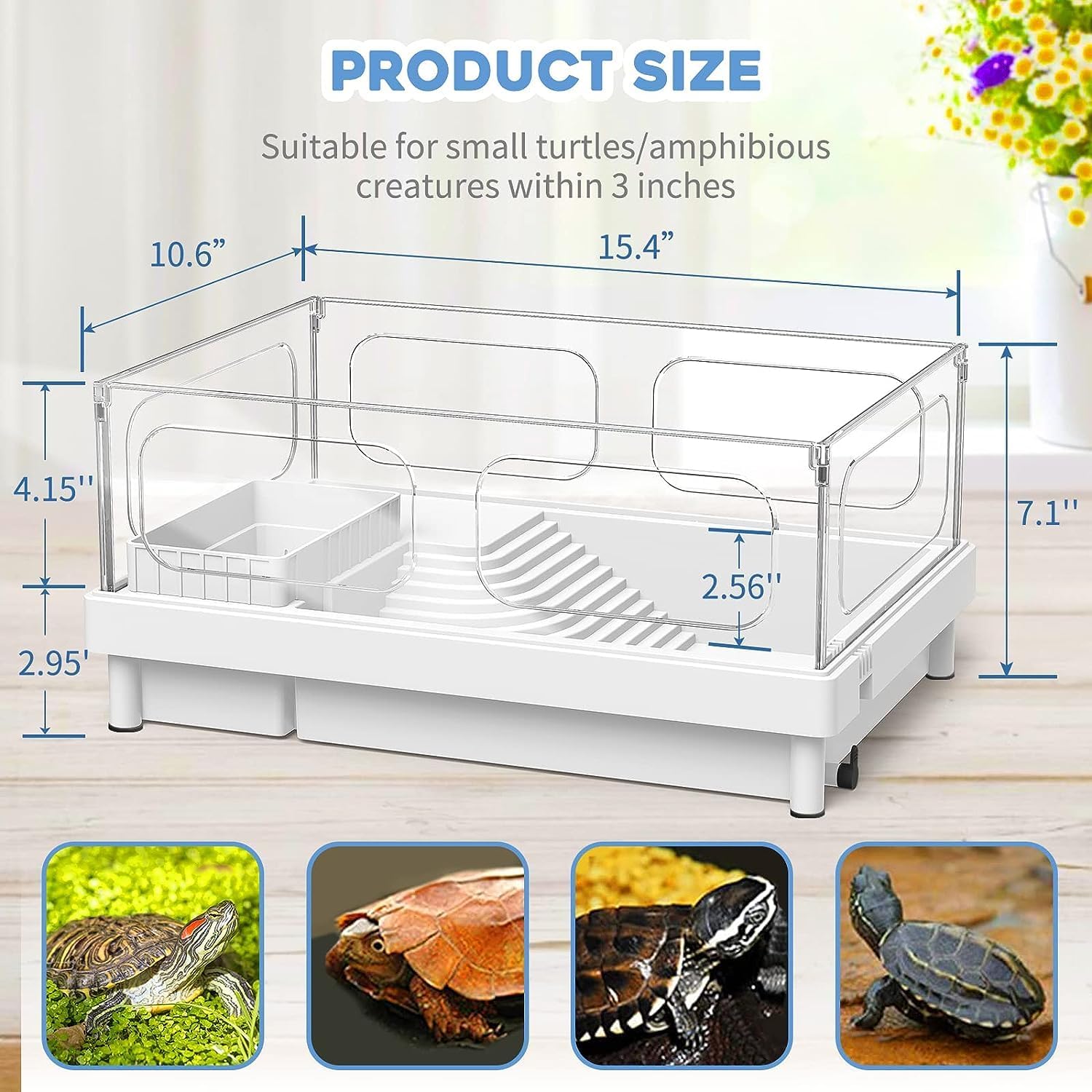 - γCompact Tank & Easy to InstallγTank size 15.4β x 10.6β x 7.1β. Maximum water level: 2.56ββ. Perfect for small turtles, crabs and other small reptiles within 3.0ββ. The installation is an easy job with our manual inside the pack!