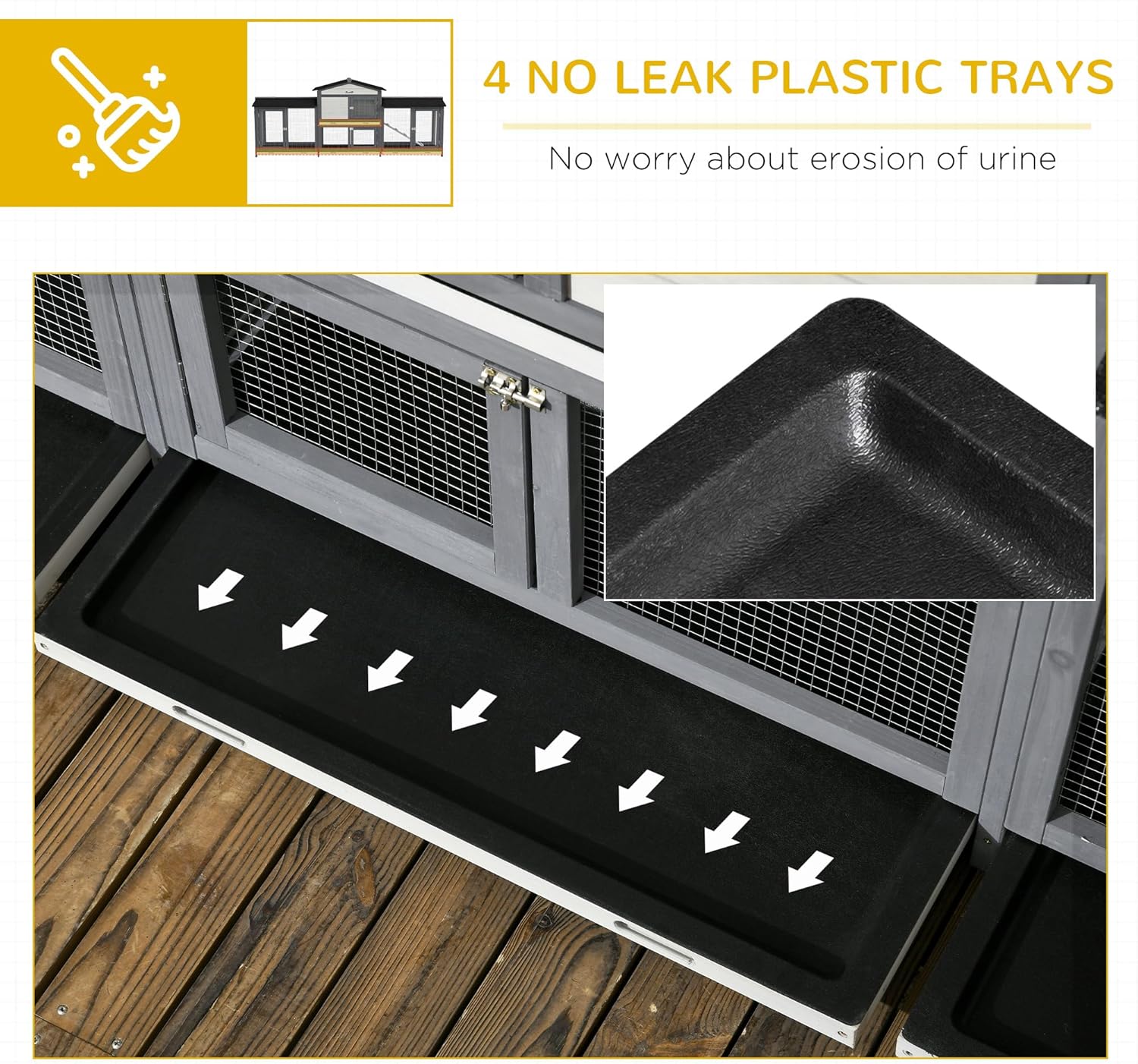 PawHut 90.5" Wooden Rabbit Hutch Bunny Cage Pet Playpen House Enclosure with Double Side Run Boxes, No Leak Tray, Ramp, for Guinea Pig and Small Animals, Light Gray