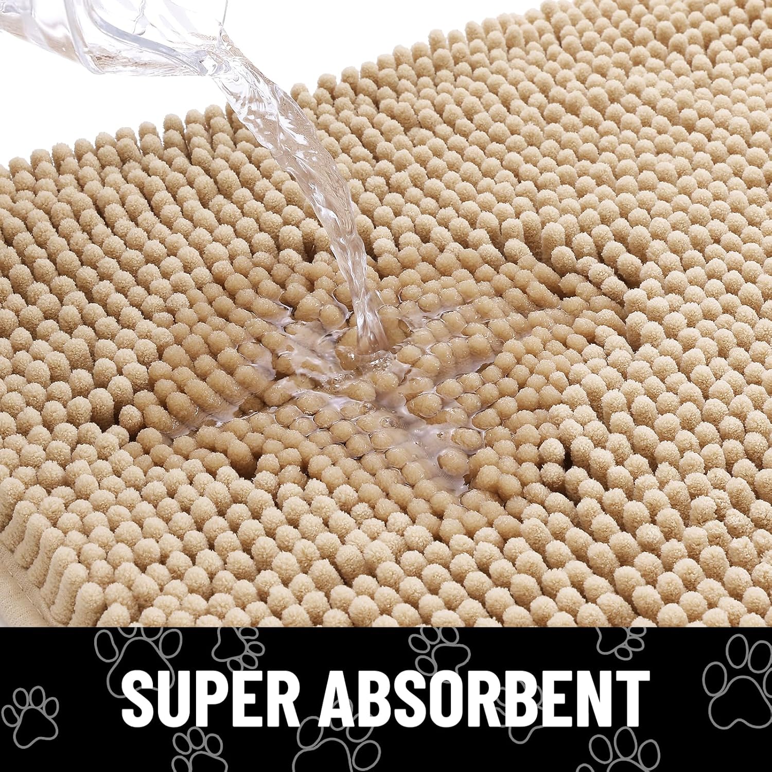 Smiry Dog Door Mat for Muddy Paws, Absorbent Dirt Trapper Non Slip Quick Dry Washable Chenille Mat for Mud Dogs, Entry Rug for Indoor and Outdoor (36x24 Inches, Beige)
