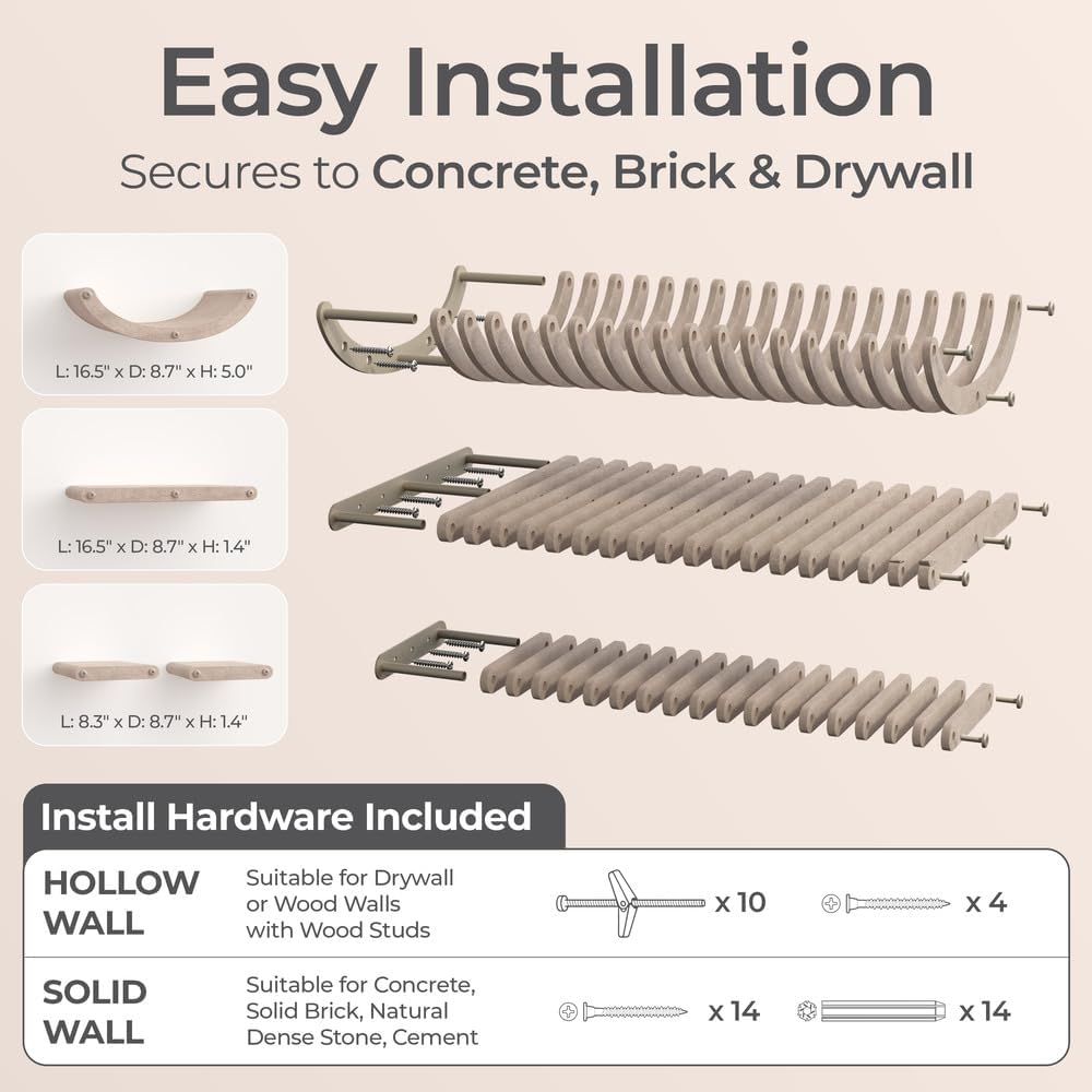 - Effortless Paradise: This cat playground includes all installation hardware, allowing your fur-baby to start exploring right away. Our cat climbing shelves securely attach to concrete, cement, brick, dry wall and more ensuring your catβs safety.